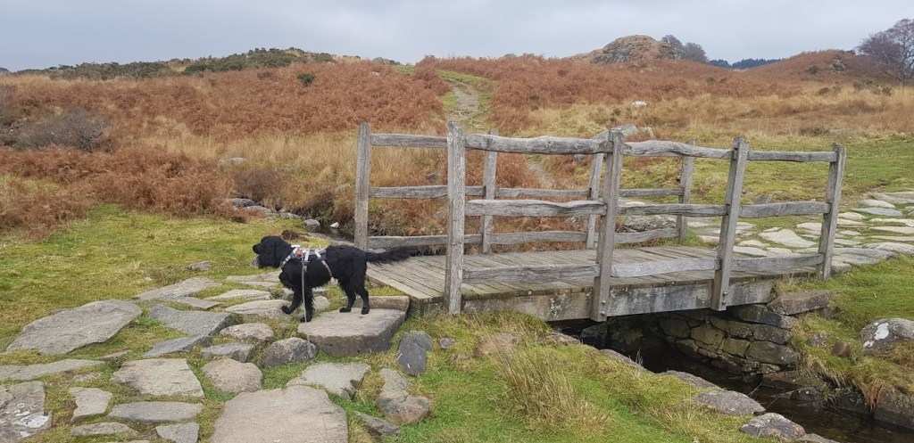 Hello people. It’s Joe the Cocker here again. There was a short break in the weather on 21st November 2019 so me and my human dad decided to drive to Snowdonia to do another hike. The day’s plan was to do a circular route from Capel Curig to Llyn Crafnant and Llyn Geirionydd. The weather forecast was for cold and cloudy but, wait for it, NO RAIN! Well, not until 5 pm anyway. So, we wouldn’t have to wear waterproofs. I can’t remember when I just wore my harness with nothing over the top.