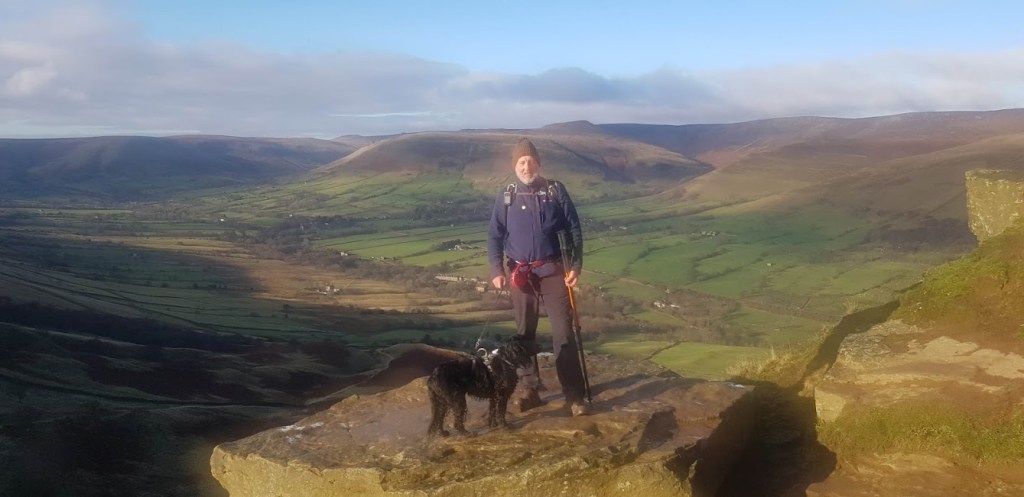 Hello again humans. Joe the Cocker Spaniel here again. This hike was a bit of a change for me and my human dad. We (by that I mean my dad) decided to go to the Peak District where we don’t go to often enough. We (he!) decided to go on a Sunday which we don’t normally do because Sunday’s are busy and we can hike on any day of the week. For the first time in a long time the weather forecast was really promising for the entire day. It was going to be very cold but sunny and only a light breeze. We jumped out of bed early. When I say early I mean half an hour after Alexa put the heating on. Alexa gets shouted at by my dad if she doesn’t do as she is told the first time he asks. I have never seen her but I think that she lives in a speaker on the window ledge. Anyway, after grabbing all our gear and preparing some food for us we set off on our 70 minute drive to Castleton. The car was frozen and I lay on my bed on the back seat while my dad scraped the ice off the windows. There was another lady in the car that I could not see. Maybe a relative of Alexa. She told my dad how to get to the Peak District. She kept interrupting the music on the radio by telling us to turn left or turn right in 300 yards. My dad argues with her sometimes. Especially when he is singing along with the song on the radio. On other occasions he tells her that where she is sending him is wrong but it usually turns out that she is right. He always thinks that he knows best!