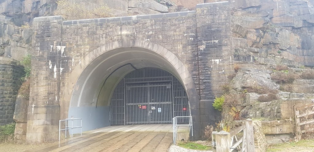 The trail continued past the Valehouse and Rhodeswood reservoirs along the valley surrounded by high moorland. The only road crossing of the trail was along the side of the Torside reservoir at Torside Crossing. It’s here that the Pennine Way crosses the route. We continued on until we came to a short rise in the path at the start of the Woodhead reservoir. We walked down the cobbles by the wrought iron railings that overlooked the lake at Crowden Station. Soon after we reached our terminus. This was the northern end of the trail at the Woodhead tunnels. It was time for a short rest.