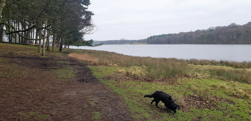 After passing through the entrance to the parkland, which is free to pedestrians and pooches, we followed the path on the western shore of Tatton Mere. As expected, it was muddy and pretty slippery in sections. I tried to run into the lake but, due to blue-green algae warnings, my dad would not let me. This was to be an on-lead day because of the wildlife in the park so, he had control over my wanderings. The lake was very still with hardly a ripple except those created by wading birds. My dad said that he feels sad whenever he comes to this lake as one of his friends drowned here some years ago in a sailing accident. It looks such an innocent lake. Today it was peaceful with only a handful of ducks and moorhens swimming on the surface.
