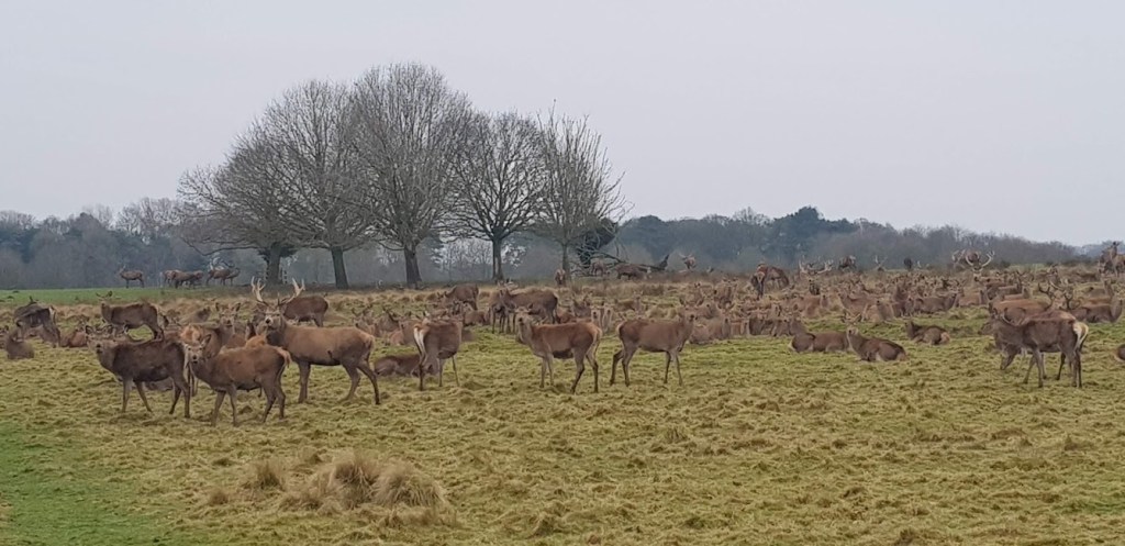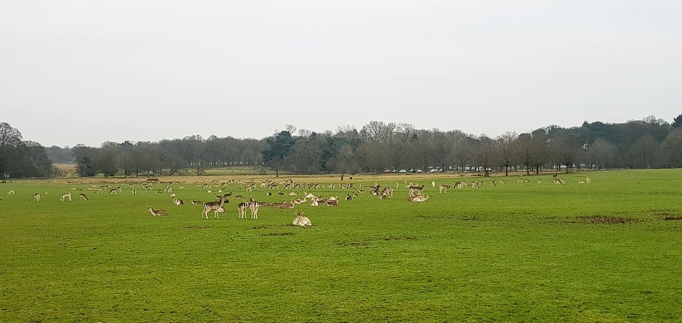 Across the parkland we could see two large herds of deer, fallow deer and red deer. We walked slowly towards the red deer herd but, we kept our distance as we didn’t want a ‘Fenton’ moment even though I was on my lead. My dad took a few photographs as we were being watched by the huge stags guarding the edge of the herd. After walking on for a few hundred yards we came upon the fallow deer herd. We again kept a respectable distance as we were being spied on by most of this herd. We walked on across the grass in the direction of a small car park.