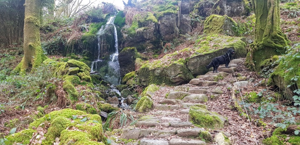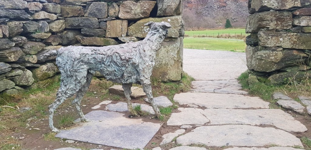 We still had some daylight left to take advantage of so, we drove the mile or so into Beddgelert. The village was very quiet with most of the shops closed for the winter season. My dad decided to take me for a walk to Gelert’s Grave. A dog’s grave! We crossed the iron bridge over the Afon Colwyn and walked along the path at the edge of the Afon Glaslyn before turning right to the site of the grave. Legend says that Prince Llewellyn returned from a hunting trip to find his faithful dog, Gelert, covered in blood. He searched his castle for his toddler son and when he couldn’t find him he assumed that Gelert had killed the child. He stabbed the dog with his sword, killing him. Llewellyn then found his son, unharmed with a dead wolf next to him. Gelert had saved his son but, his murderous deed was already done. He buried the dog where all could see the grave. The legend was probably manufactured by the owner of the Royal Goat Hotel to attract business to the village. Nevertheless, it’s a good story. A few yards from the grave there is a stone building with a statue of Gelert hiding just inside. I walked into the building and was scared out of my wits by the dog. I barked frantically at the dog before having a sniff of its nether regions. My dad found all of this event very amusing. He is such a joker. We walked back to the car but not before I tried unsuccessfully to catch a duck or two in the river.