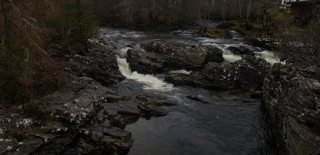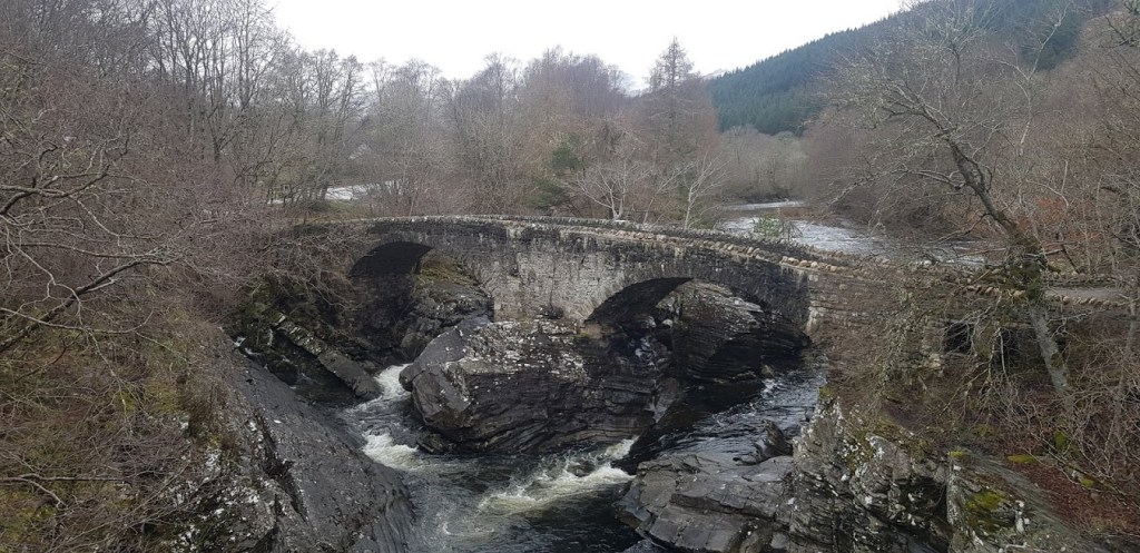 So, after he had finished eating his hearty breakfast we drove back to Fort Augustus to pick up our tent. When we returned to Invermoriston we had a walk around the village. It is a pretty place with a fascinating disused bridge spanning the River Moriston Falls. It was built by Thomas Telford in 1813 and replaced by a new bridge in 1930. St. Columba’s Well is a few yards away from the bridge. The spring was originally said to be poisonous until St. Columba, in 565AD, blessed the waters and purified them. After we had walked around the village we passed the Bridge Suite, that we had booked into and were greeted by Tom, the owner. He said that the rooms were ready for us so, we walked back to the carpark to grab the car. On our return we received a really warm welcome from Tom and Pat and were shown around the accommodation. We had a kitchen, a diner/lounge, a bedroom and a shower room. It was perfect. Clean, nicely decorated and best of all, toasty warm. We quickly settled in and grabbed a snack and a drink. He also said that we could leave our car parked at the front of the house until we returned from our hike.