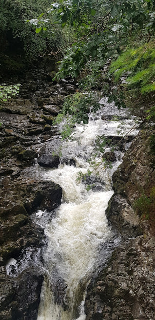 We rejoined the minor road that runs into Betws y Coed, at a point west of the Miner’s Bridge. After crossing the road we joined the footpath that runs along the Afon Llugwy towards Betws. Through the trees, we caught the odd glimpse of the river and some of the rapids downstream from Swallow Falls. The path led to a boardwalk before we arrived back at Pont y Pair. We had hiked just over ten miles rather than the six that we had originally planned to do. It had been a varied and scenic walk with plenty of squirrels for me to chase.