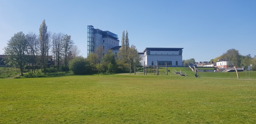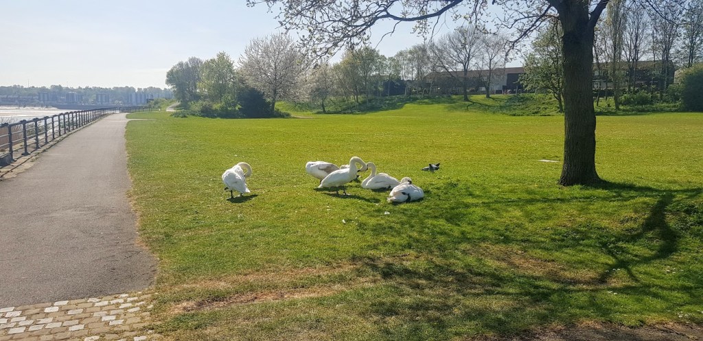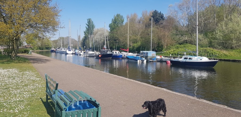 The first building of any significance that we came across was the Catalyst Museum, the science and chemical industry centre housed in the main offices of the Gossage’s Soap Works. This is a popular attraction under normal circumstances but, looked eerily empty during the Coronavirus restrictions. Adjacent to the building is an open grassy space leading to the West Bank Dock at the end of the canal. There was an amazing number of swans, geese and ducks around the towpath and the dock. My dad was proud of me because I didn’t bark or try to chase any of them. Don’t ask me why because, I normally would. I must be mellowing as I rapidly approach the grand old age of three years.