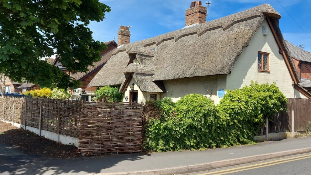 We passed a small cobbled lane, Woodward Street, that led to a few houses tucked away along Church Lane which he also seemed to like. Opposite was another pretty thatched cottage, Raintub Cottage. On the bend of the road stood the Anglican church of St. Mary’s. The red sandstone and Welsh slate Grade I listed building has parts dating to the 15th century. There has been a church on this site since Saxon times. As usual, we had to stop for a photo shoot but, we didn’t linger long because my human had spotted an information board on the roadside. He insists on reading every board that we come across. Now, if they indicated where the muddy puddles, squirrels and peeing posts were, then I would be interested too.