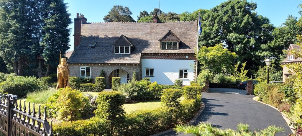 We were lucky to find a quiet road called Sutton Field, to park the car in the village of Whitegate, that was actually on our planned route. We left the car opposite a house called Manor Keep that was allegedly passed by several Kings of England on their way to Vale Royal Abbey. The Kings Guard would have escorted the monarchs along Vale Royal Drive and they are commemorated by a huge wooden ‘Kings Guard’ carving in the front garden.