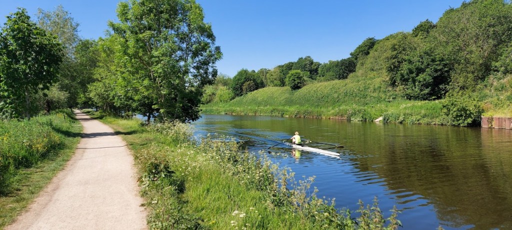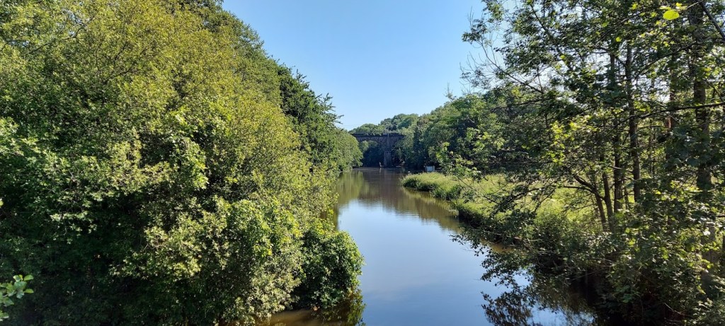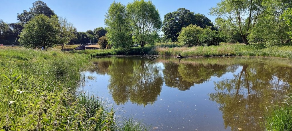 On our left was the Hartford Wetlands, an area of marshes, grassland and reedswamps. I was fascinated by the dragonflies that were buzzing around us and I tried to catch the butterflies that were teasing us. We also saw people canoeing and paddle-boarding on the river. At this point they were very few people to be seen and the walk had been peaceful. As we approached the railway viaduct, for the second time, people started to come out of the woodwork. This part of the walk is quite popular because it is an easy riverside stroll with carparks dotted along the way.