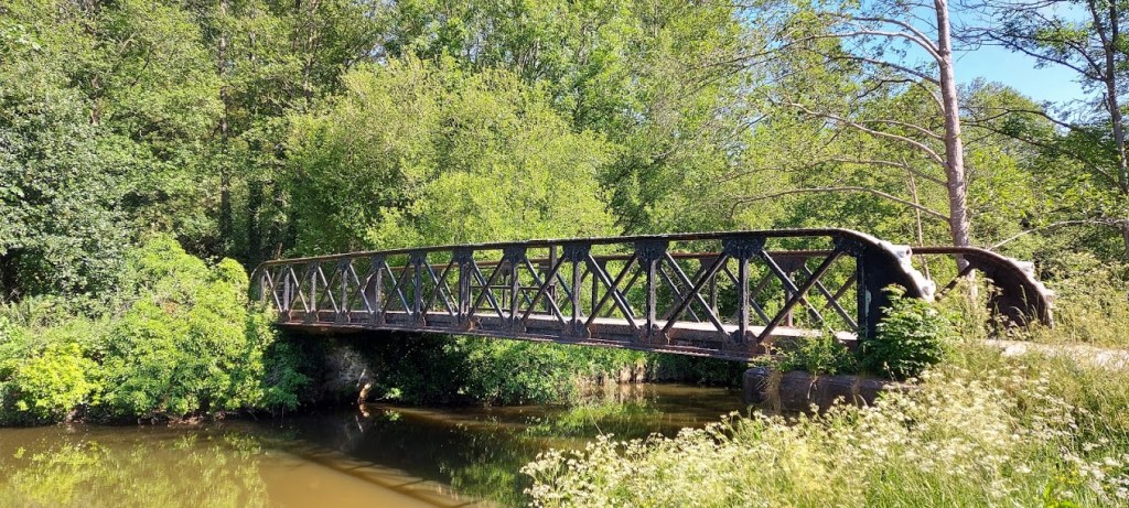 We passed close by Vale Royal Locks on the Weaver Navigation. The River Weaver divides at this point to form a navigable stretch through a series of locks. We had a quick look around the ponds and the islands formed between the waterways before we found a footpath to walk along by the side of the river. The railway crosses the river a few hundred yards along the path by a tall arched viaduct. We continued along our route through the woods toward Hartford Bridge, locally known as the ‘Blue Bridge’. This single span steel bridge carries the A556 duel carriageway over the river. We crossed it to join the path on the opposite bank of the river to head in a south westerly direction along the riverbank.