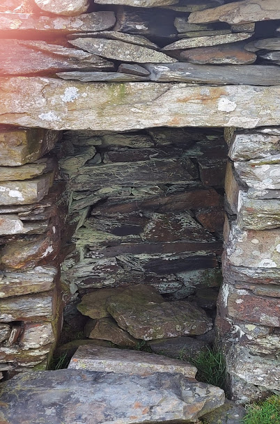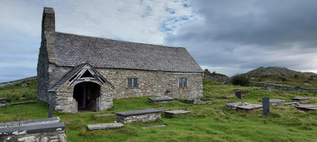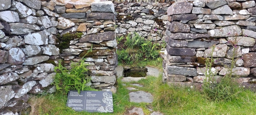 It was only a few hundred yards to the grade 1 listed Old Church of Llangelynin, or St. Celynin. It is one of the oldest and most remote churches in Wales and dates from the 12th century. Within the grounds of the church is a 6th century rectangular well. The church was probably built on the site of an earlier church and was once at the centre of a widespread community. It was abandoned in 1840 but has since been reinstated and used for just three services a year. It must have been a popular place at one time, as there was an inn built attached to the graveyard wall! Under normal conditions, the door is left unlocked for visitors but due to Covid restrictions, we could not enter the building. The well is purported to have healing qualities as sick children were cured by being dipped in the water. The children were taken to a nearby dwelling overnight and their clothes washed in the well. If their clothes sank, it was said that the child did not recover but, all would be well if they floated.
