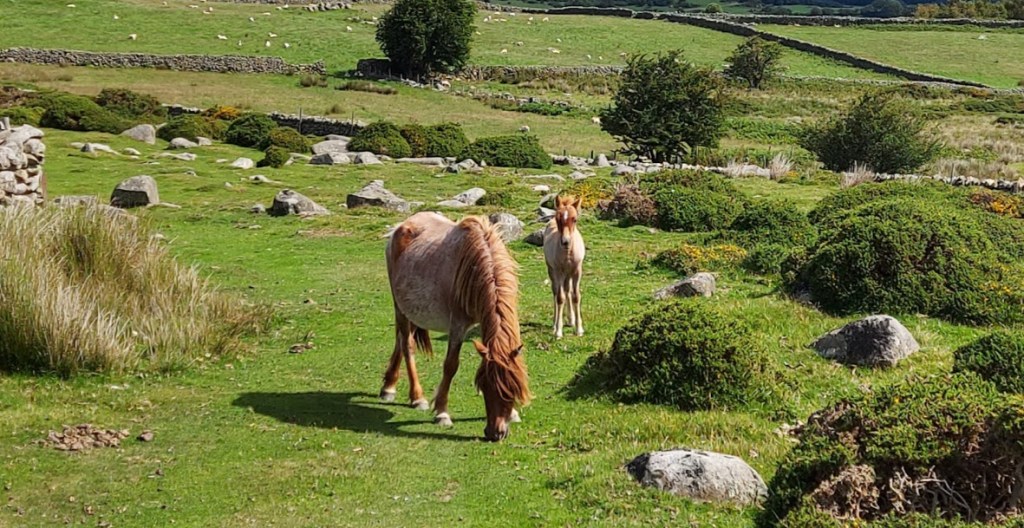 We had less than a mile to walk back to the car so, after finishing our snack, we set off along the feint footpath over the grassy hillside. Hovering above us we spied a buzzard and followed it with our eyes as it plummeted to attempt to catch, unsuccessfully, a mouse or some other unsuspecting creature. We also came across more Carneddau ponies grazing on the lush grass in another boggy area. There are approximately 300 of these semi-feral ponies with a history going back as far as the bronze age.