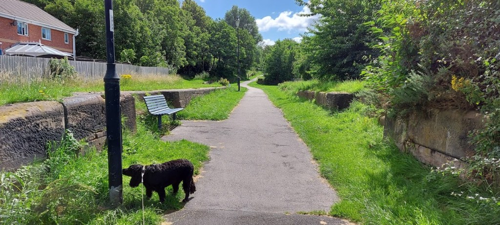 There is a flat area at this point that was once a basin, surrounded by warehouses. The canal walls can still be seen lining the footpath, that heads downhill, and crosses Old Coach Road. It is hard to imagine that this tree lined footpath owes its existence to a thriving two lane highway for heavily laden narrowboats and barges. Well, I let my human ponder stuff like that. It was a good area for me to mooch around and sniff in the undergrowth.