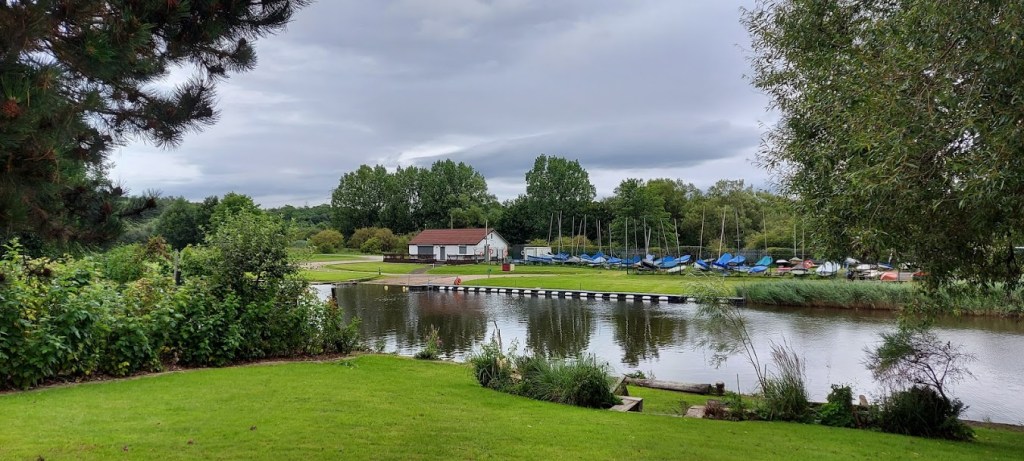 As you pass under the viaduct there are a few pleasant cottages on one side of the footpath/cycleway with gardens on the riverbank on the other side of the path. There are good views over the river to Weaver Sailing Club with its dinghy’s lined up on the bank opposite us. The club was formed over thirty years ago and caters for sailing, skiing and canoeing.