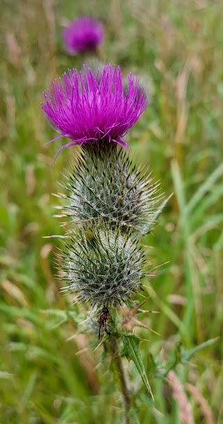 We passed over a footbridge, by a small pumping station, that spanned one of the many water channels in this area that drain the marshes in time of heavy rain. As we moved on we walked along the top of an embankment that runs alongside the river. The are is the habitat for many wildflowers, insects and butterflies. My dad stopped a few times to take photographs of the plants and I expect that he has included some in this blog.