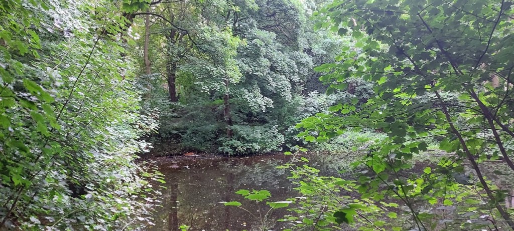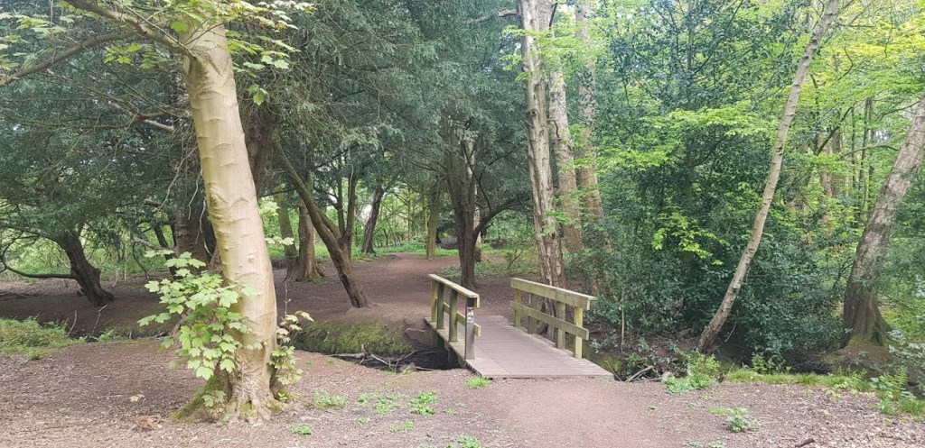 After a pleasant walk along the fence to the priory grounds, we came to Fountains Wood, over another footbridge across the Bridgewater. It is a small broadleaf woodland and was also part of the Norton Priory estate. At 2.7 acres it is a small area of woodland but, a haven for wildlife. Water voles can be seen at times scurrying across the towpath to the canal. There are a couple of short lengths of footpath at either end of the wood but, due to the dense nature of the undergrowth a way into the wood is restricted. At the western edge of the wood we entered into Phoenix Park, an open space that leads back into Pickering’s Rough.
