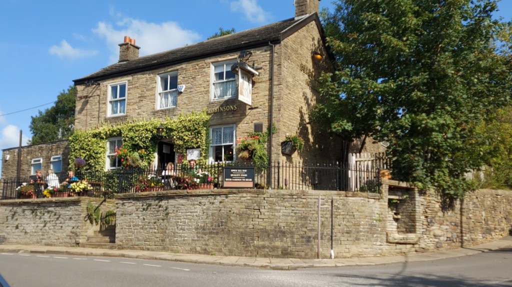 We parked across the road from the 17th century Bull’s Head, on the corner of Oak Lane and Redway Lane. After a couple of hundred yards uphill, along Redway Lane and passing some lovely cottages on our left, we came to a footpath sign. We walked between the houses until we could see the path heading downhill toward Bollington. We had gone the wrong way. The big feller needs to pay more attention because I rely on his map reading. If he points me in the right direction, I don’t mind leading the way but, if he sends me in the wrong direction, how am I to know? We turned around after a hundred yards so, this time, it wasn’t a problem. He actually pretended that it was deliberate so, that he could photograph the view. It was a Pinnochio moment!
