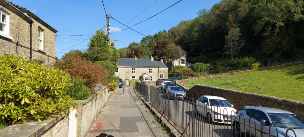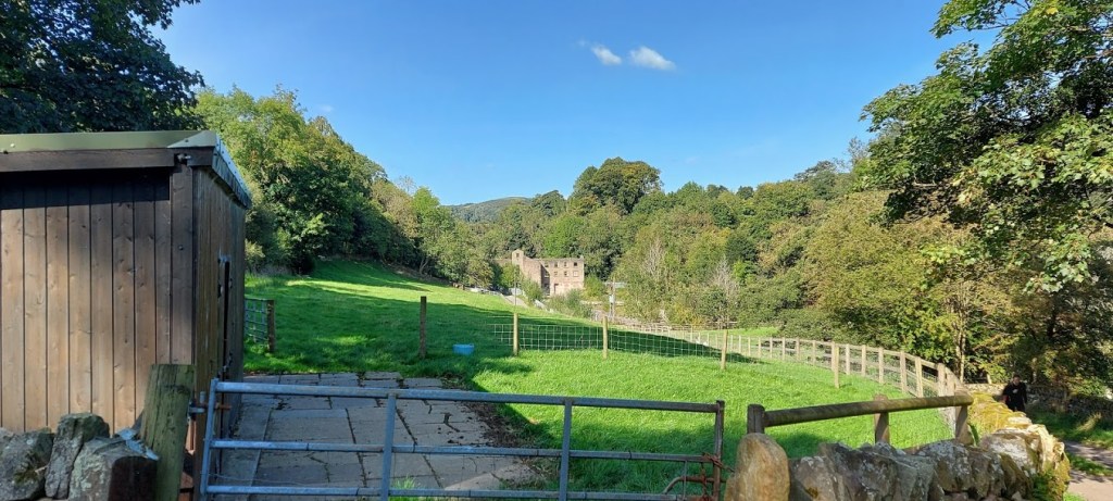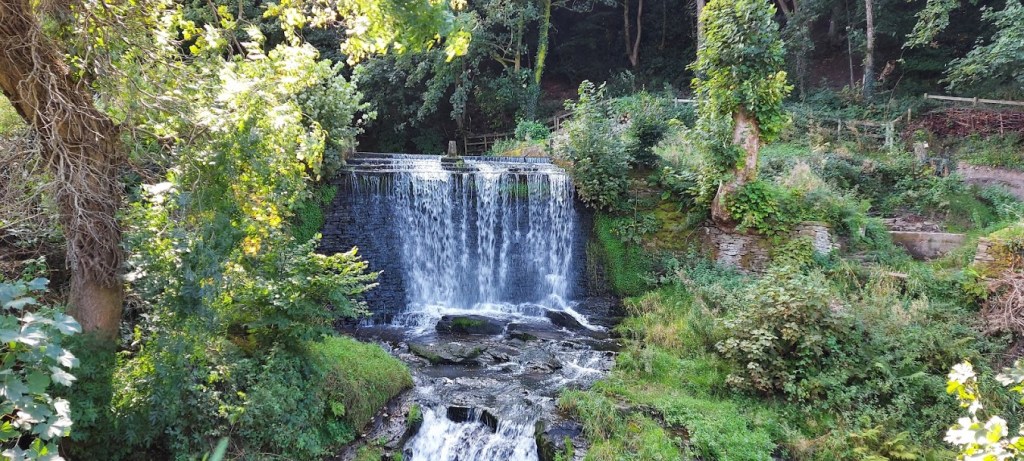 A rather spectacular waterfall greeted us at the small hamlet of Waulkmill. We could imagine that it would be really impressive after heavy rain. Maybe we will return when the weather isn’t so dry. Waulkmill Farm is a pretty row of buildings by the falls. It is a tranquil spot, as it was bathed in the late summer sunshine, with the sound of thrushes in the trees and butterflies and dragonflies landing on the long grasses by the riverbank.