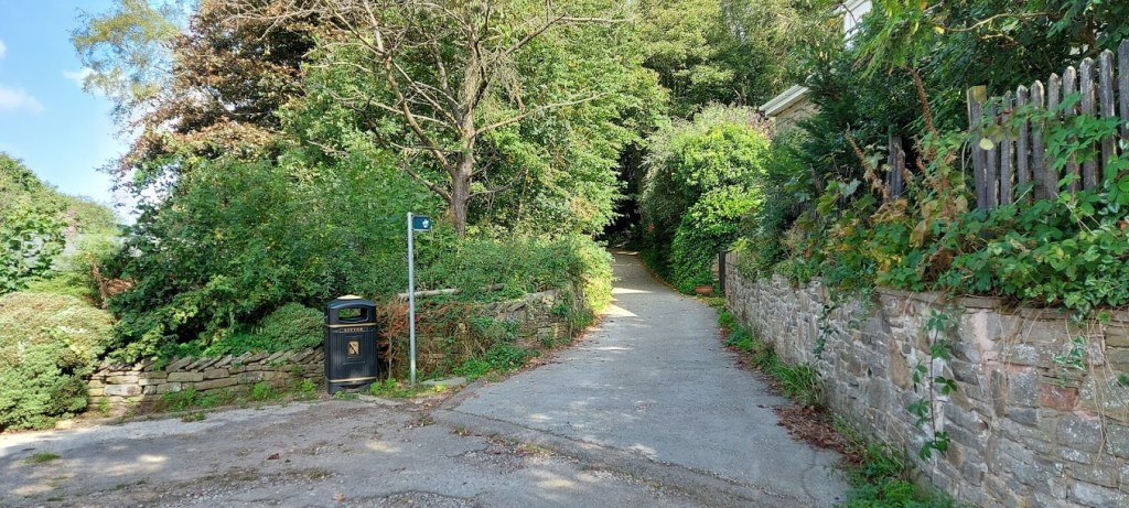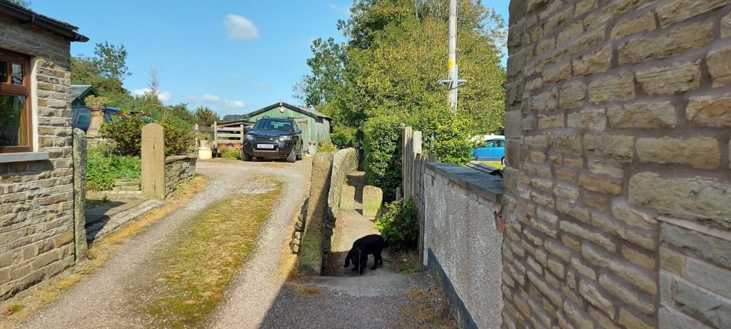 After we had rested for a while, my human stood up gingerly, and proceeded to carry out some strange knee stretches, as he complained about the inconvenience of having a ‘dodgy’ knee. He can moan for England! We caught some glimpses of Ingersley Hall, the Gaskell family home, now called Savio House. We plodded on along the grassy hillside on a Kerridge stone flagged path, until we came to a gate, that led us into woodland. Waulkmill Wood is a small broadleaf woodland managed by the Woodland Trust. The path through it ran closely to the River Dean and as we left the wood, we were surprised by what we saw.