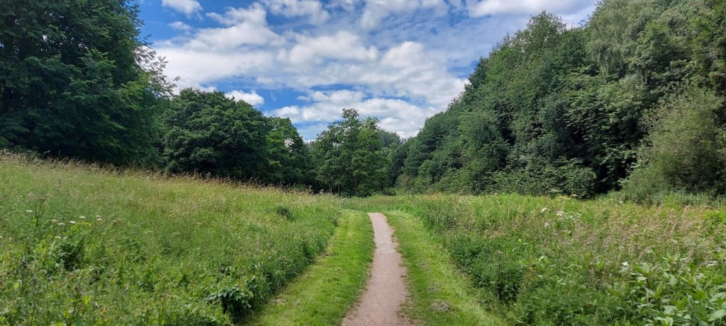 We started our woodland walk by entering Murdishaw Valley Nature Reserve, through a gate from Duke’s Wharf, in the Marina Village. We headed south into a large open meadow surrounded by established broadleaf woodland. A footpath runs parallel to this one within the trees to our right alongside the houses of Murdishaw. There is a walk on the Merseyforest.org.uk website that follows a pleasant route around the woodland. We have walked this once before so, we decided to meander aimlessly through the nature reserve on this visit.