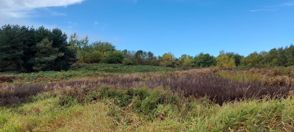 The quadrant is also a patchwork of meadows and woodland. The meadows were formed in the 1980’s when the waste tips were covered in clay and topsoil. The woodland was planted in the 1990’s alongside the existing patches of trees that are remnants of the farmland that originally dominated the area. Oaks, birches and hawthorn are the main trees in this quadrant, along with the odd pine. Unfortunately, I had to stay on my lead for most of the time that we spent in this part of Stadt Moers due to the number of dogwalkers that appeared. I did get to run around off-lead now and again in the quieter areas.