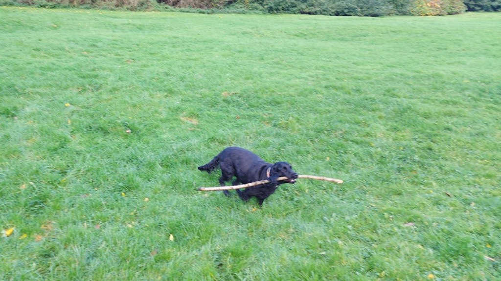 This part of the park was quieter than the Tushingham Quadrant so, it was time for me to have a run. Sticks and puddles. It was my turn for a bit of fun. After a bit of a blast and burning off some energy it was back on the lead.