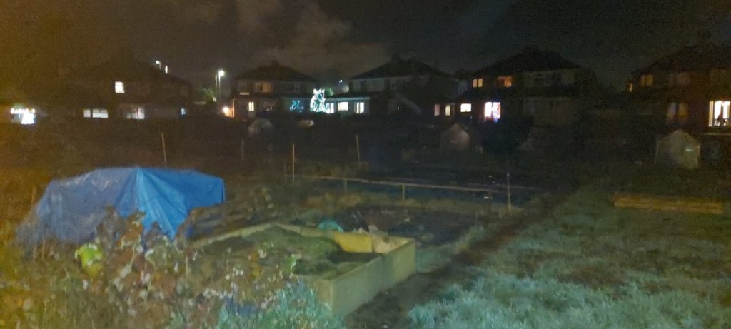 My dad put on his waterproof coat in case the rain arrived early while, I chose to wear my HiViz jacket. I wanted to be seen while we walked around town in the murky darkness. I did notice that I wasn’t given the choice of wearing my waterproof coat. He looks after himself!