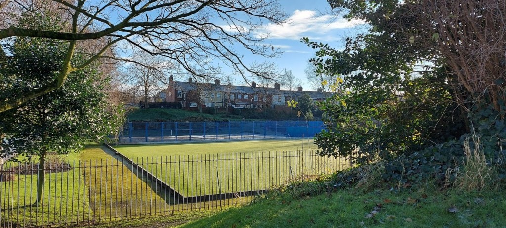 We trudged over the Grange School playing fields where I had a run, off-lead, while I picked up the discarded water bottles. It wasn’t long before we were back walking through the houses of Stonehills Lane and Saxon Road. We were heading for Rock Park where my human used to play tennis on the rental hardcourt in the summer months. Sport and music continued to be his loves in his teenage years.