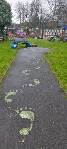 10 The unusual painted footprints lead into The Old Town Bloom Community Garden. The garden can be found in High Street between the old gas showroom and Mark Reynolds Solicitors. It is well worth a mooch around.