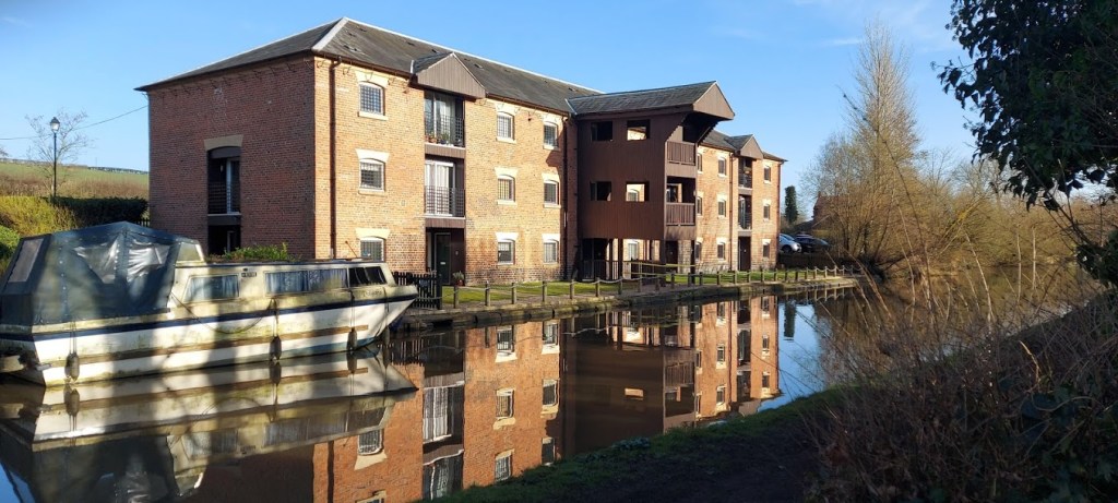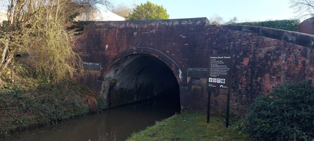 As I was busy chasing ducks, from the comfort of their resting places, on the edge of the canal, my human was busying himself taking photos of the Grade II Listed apartment complex, on the opposite bank. The three story brick building was constructed around 1772 as a warehouse called the North Staffordshire Warehouse and later, The Stafford Warehouse. The wooden loading bay has been renovated to provide balconies overlooking the canal. Nowadays, the building is known as the Old Number One and has previously been known as the Neptune Club, in the days when it was a night club. It was known locally as ‘The Neppy’. We continued along the towpath of the Bridgewater towards the Preston Brook Tunnel.