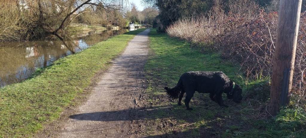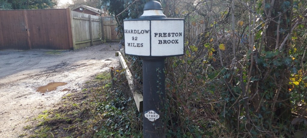 We crossed the bridge and soon spotted the Grade II Listed mile marker, low down on our right. In the days when horses pulled the boats along the canal, this was the point where they were taken over the top of the tunnel, to the south end along a rough lane. The boatmen would then ‘leg it’ through the tunnel, lying on their backs on the top of their boats, and ‘walking’ along the roof of the tunnel. The mile post was made by R&D Stone in 1819 and indicates that Shardlow is 92 miles away. A walk for another time my human said.