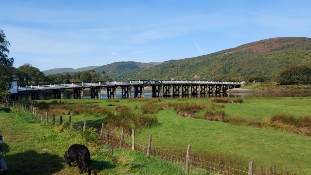 Hello again people and pooches. Joe the Cocker here. In September 2020, when it was permissible for us to travel and hike in North Wales, me and my human walked the Mawddach Trail. The route took us from Dolgellau to Barmouth and we passed through one of my human’s favourite places. Penmaenpool, or Llynpenmaen, is a small hamlet on the southern bank of the Afon Mawddach. It grew up around the ship building industry in 1770 with over one hundred ships being built here, up to 1827.