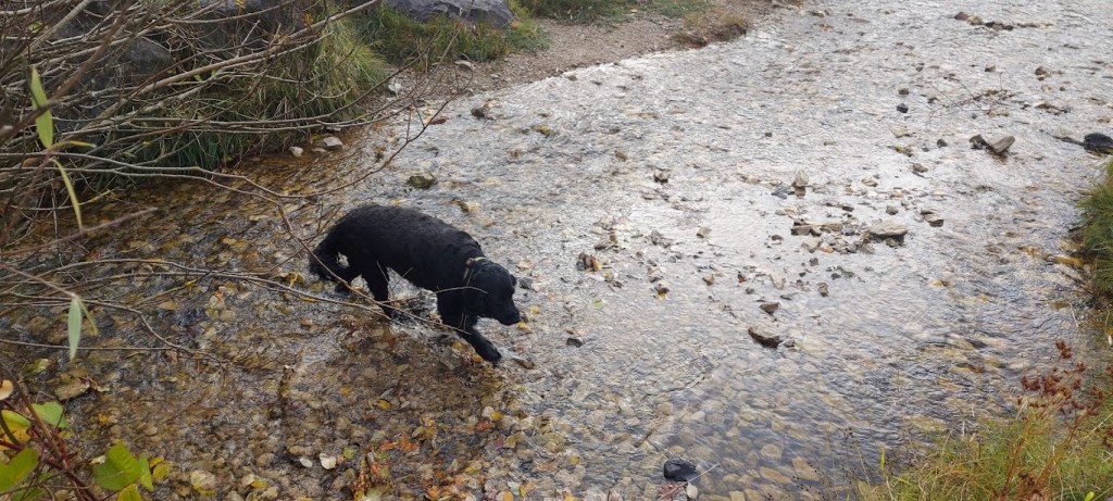 We headed back toward the car by walking along an old mining road alongside the stream. By the time we arrived back at the car park my human said that we had walked for 4 miles. I had probably covered about 6 miles after zooming around and investigating. So, rather than walk the 1.5 miles each way to the Lead Mines, we jumped in the car to drive there.