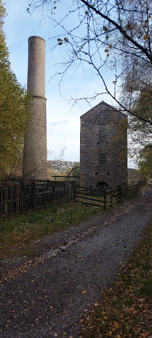 Me and my human had a mooch around the exterior of the buildings before we explored some of the footpaths on the site. I liked the one that led up the hill through the trees, to a viewpoint. This overlooks the Clywedog valley over to Minera and Coedpoeth. The big feller rested his bones of a bench at the viewpoint while I had a sniff around the bushes. He slurped his coffee from his flask cup while I ate a few treats. We met some people that we had seen at the quarry and they were amazed at how quickly we had arrived at the Lead Mines. They had walked, we had driven. Ha!