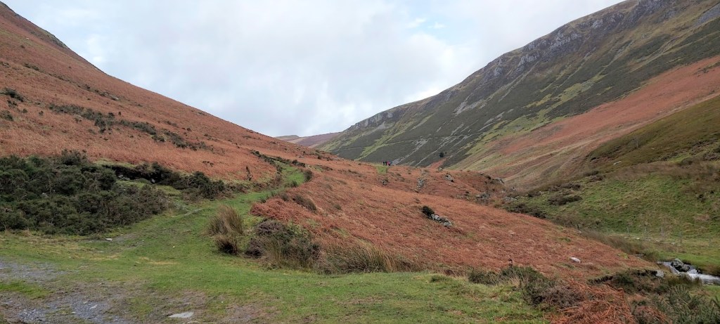 Ahead we could see the footpaths leading into the Berwyn Mountains, but there were for another day. Instead of continuing on the easy path, my human took us off-piste, up a steep and slippery footpath. This rejoined the easier path further up the hill. He made the excuse that he wanted to take some photographs, as he struggled up the slope, so that he could gasp on some air. The views back down the valley were worth the wait for him.