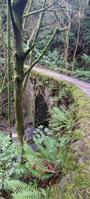 We walked back to the footpath and took a turning that led us to the top of the falls over a narrow stone bridge. To the left of the bridge we came across a couple of lifesize bears guarding a flight of steps. My human said that they were made of wood so I wasn’t scared. It was a bit of a shock though so, if you go down to the woods today, you’re sure of a big surprise!