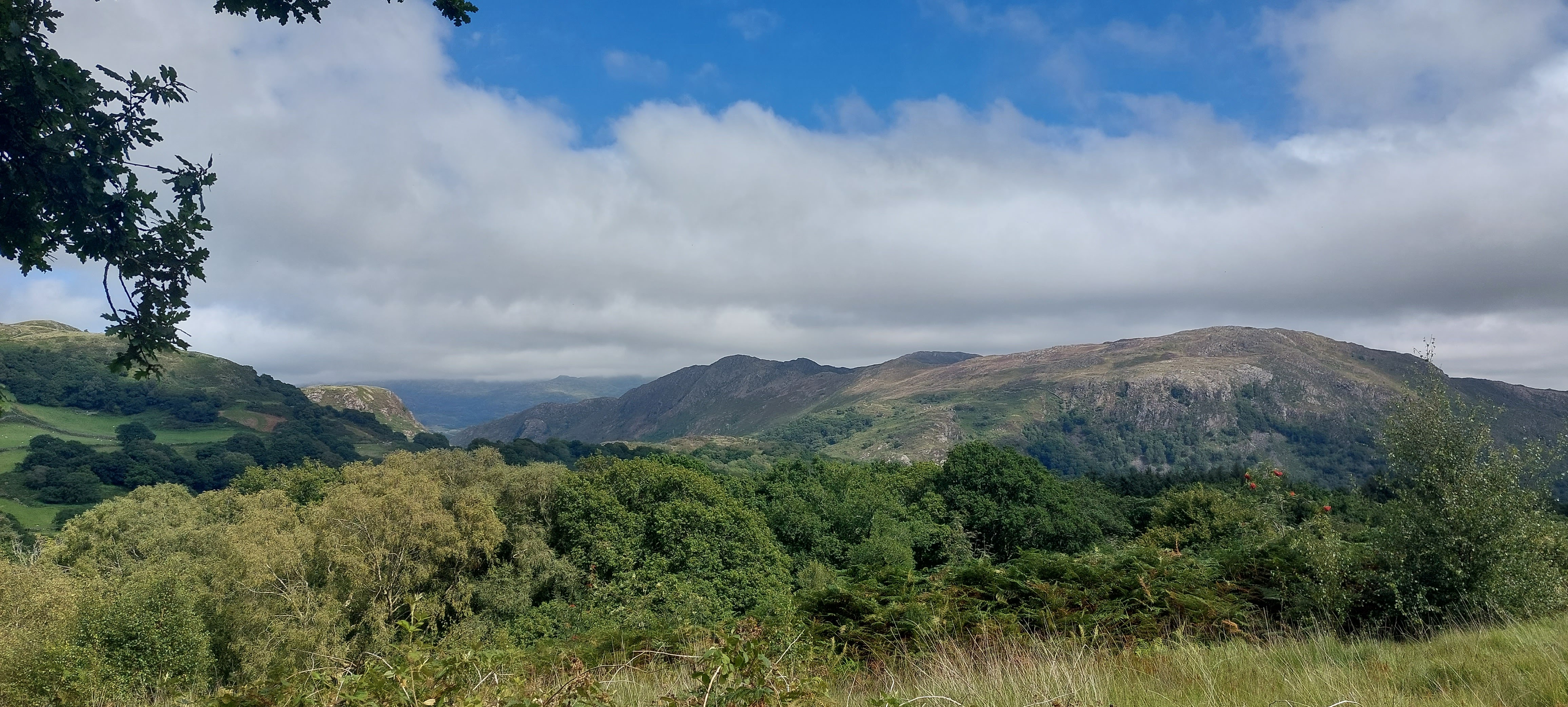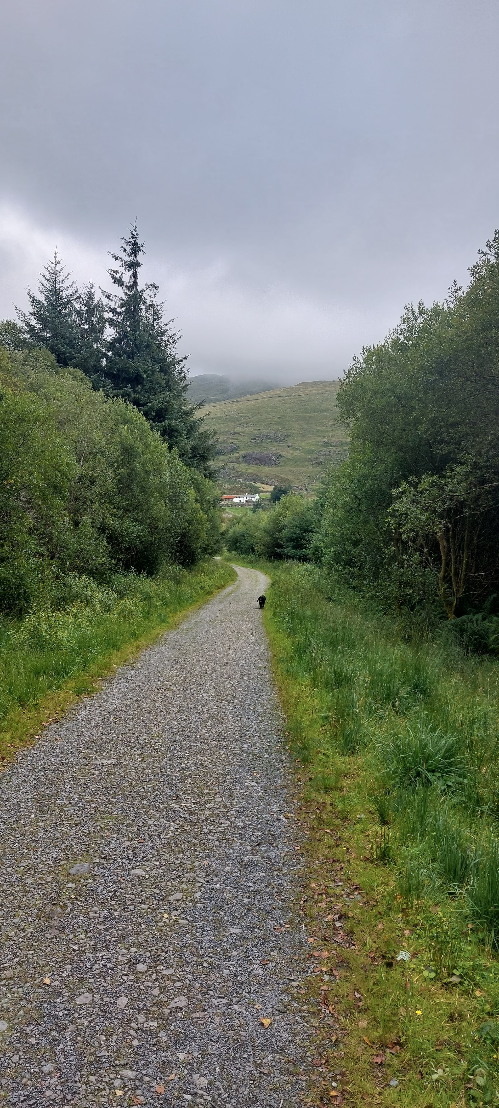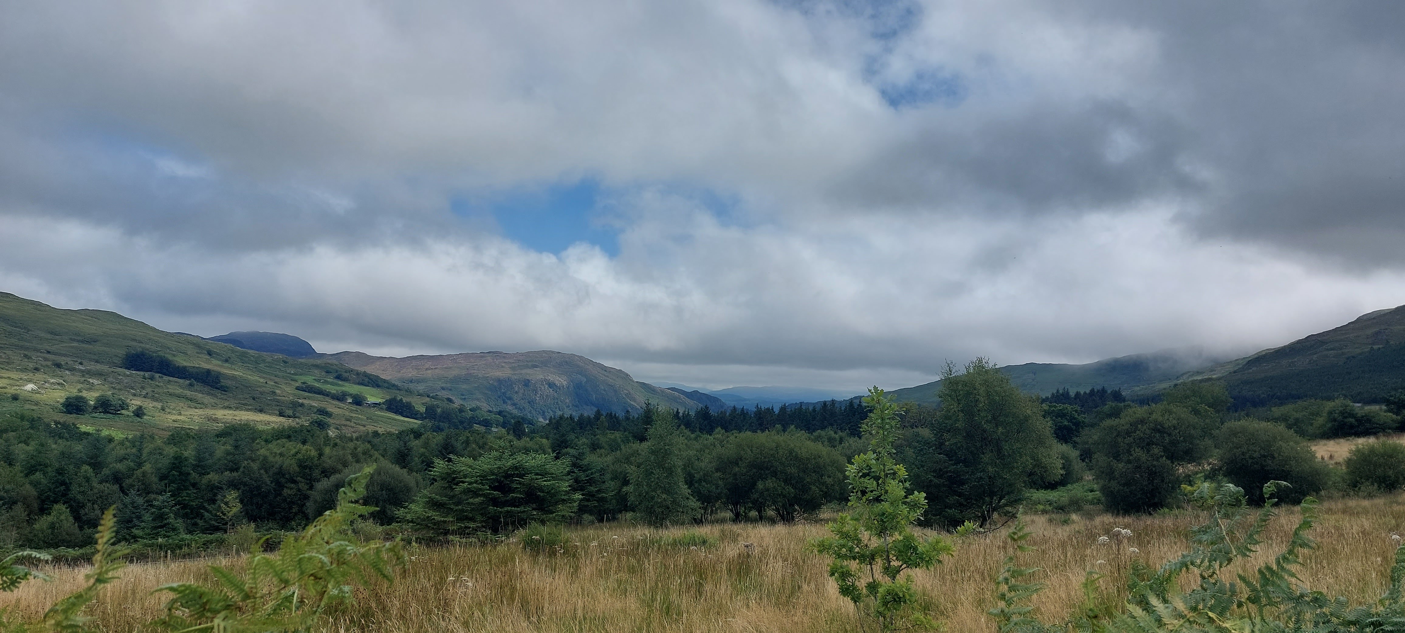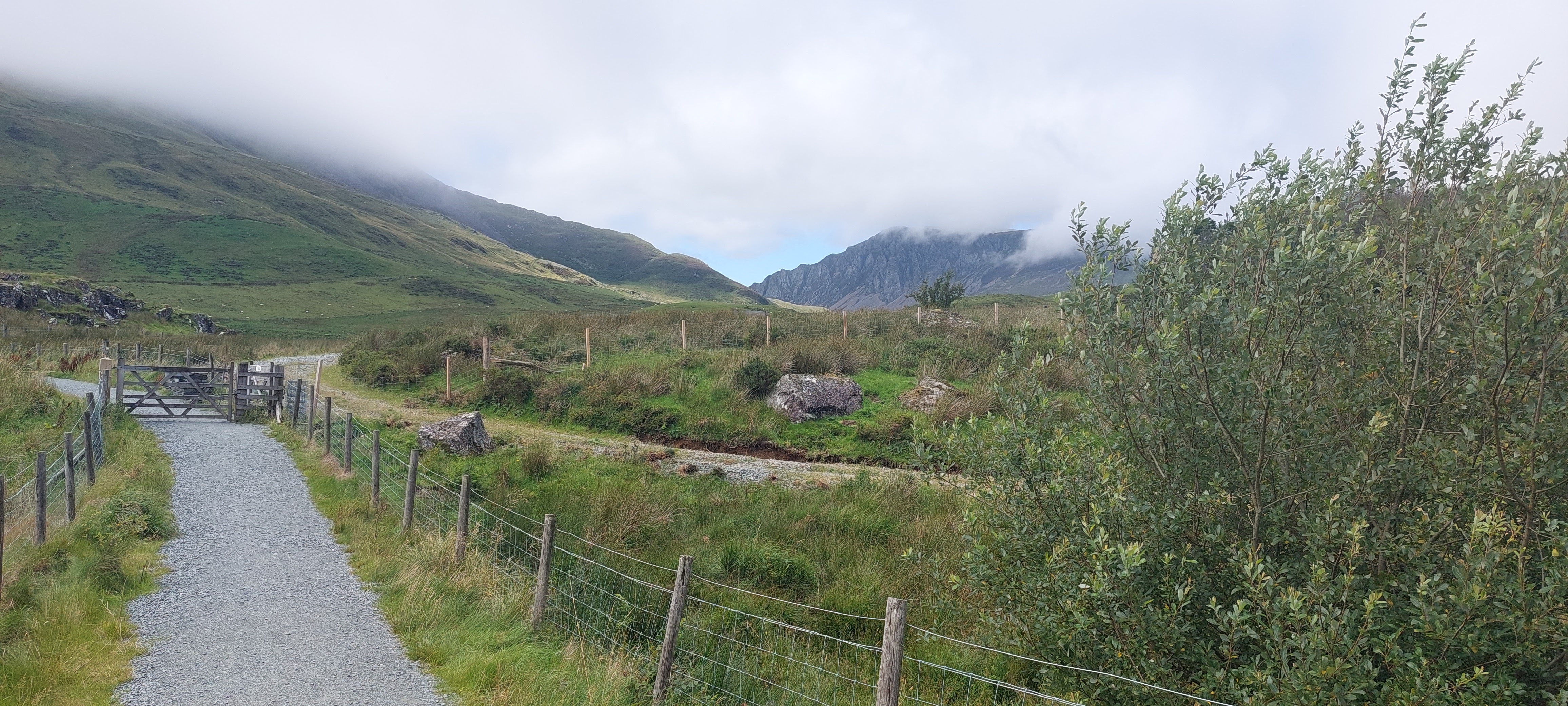 Hi again people and pooches. Joe the Cocker here to tell you about an easy hike that me and my human walked in August. We chose an easy one because my human is trying to regain some fitness after having an iffy knee for a couple of years. It was an out and back walk along a multi-use track called Lon Gwyfrai, which runs between Beddgelert and Rhyd Ddu, in Eryri (Snowdonia).