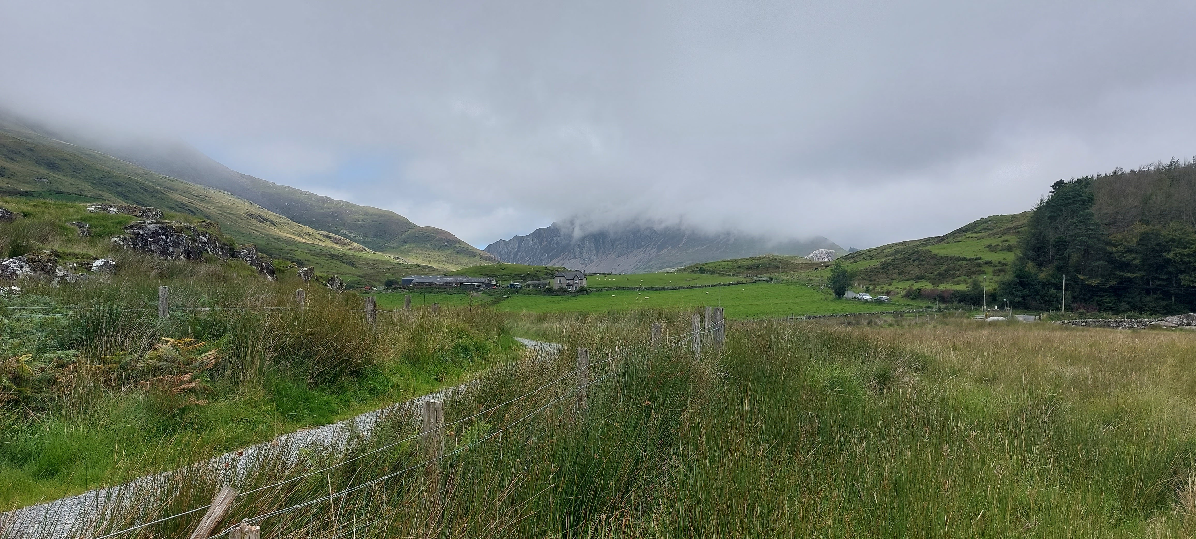 As we left the forest, we would have had fantastic views of Yr Wyddfa, but instead, we were treated to fantastic views of low-lying clouds. Hey Ho! We will revisit on a clear weather day. I led the way with the big feller shouting,’Wait!’ when I went too far ahead. He could simply ask me to wait, but he insists in dreaming that he has total control over me. I humoured him and waited. I knew that, along with calling me a good boy, there was also the chance of a treat. I’m not daft. I have got him well sussed!