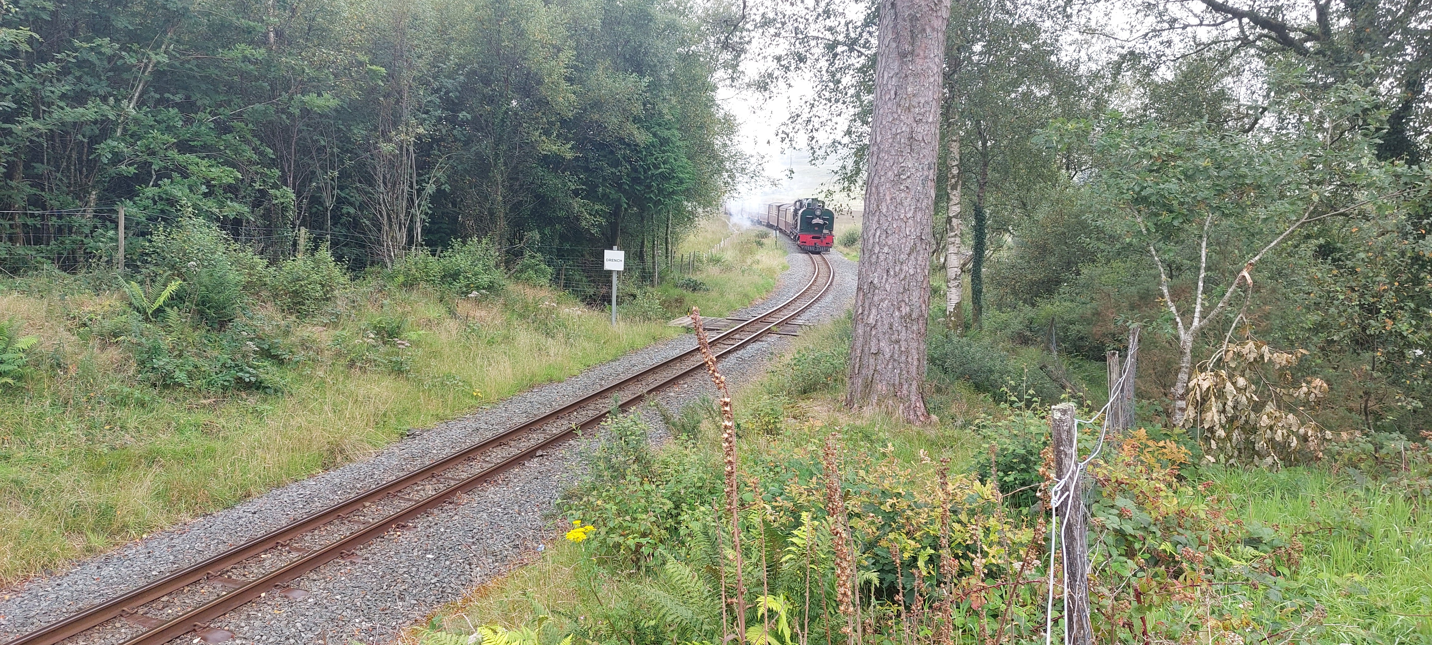 The track begins at the side of the Bedddgelert Railway Station. The narrow gauge railway is on the Welsh Highland Line, which opened in 1922 and closed in 1936. The line was reopened in 2009. The line uses steam trains and is a highly popular tourist attraction. Lon Gwyfrai roughly follows the route of the railway line through some amazing countryside.