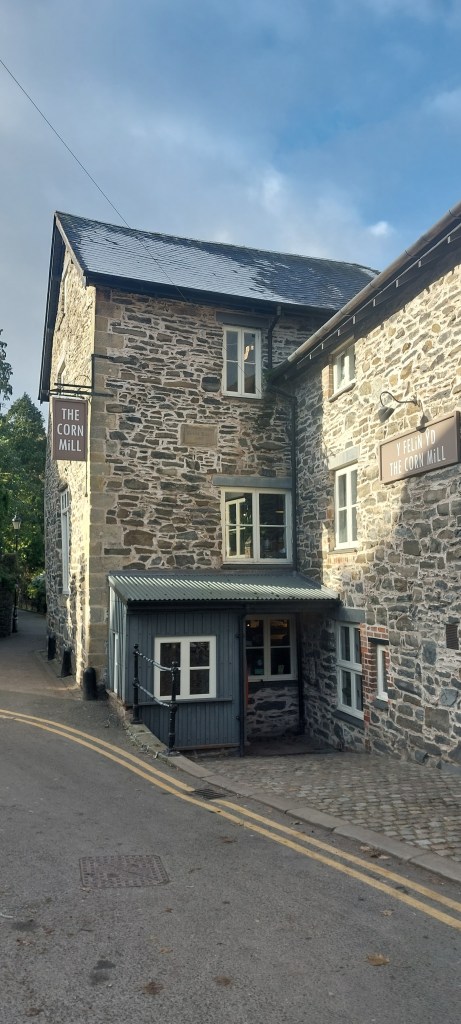 1. The mile marker is located in its new position to the right of the entrance to the Corn Mill, Y Felin Ŷd.