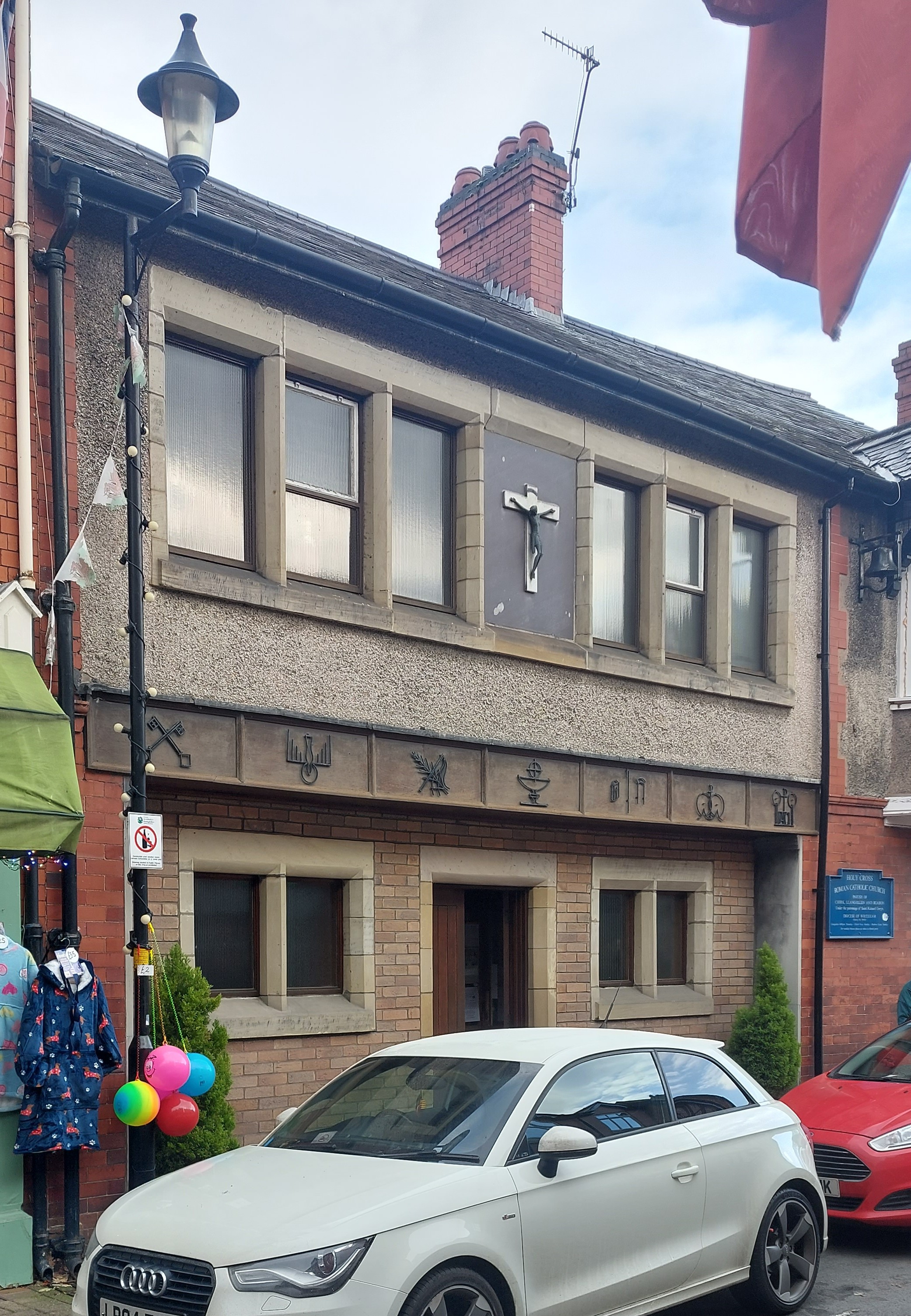 9. The symbol appears on a strip of religious symbols on the front of the Holy Cross Roman Catholic Church in Oak Street