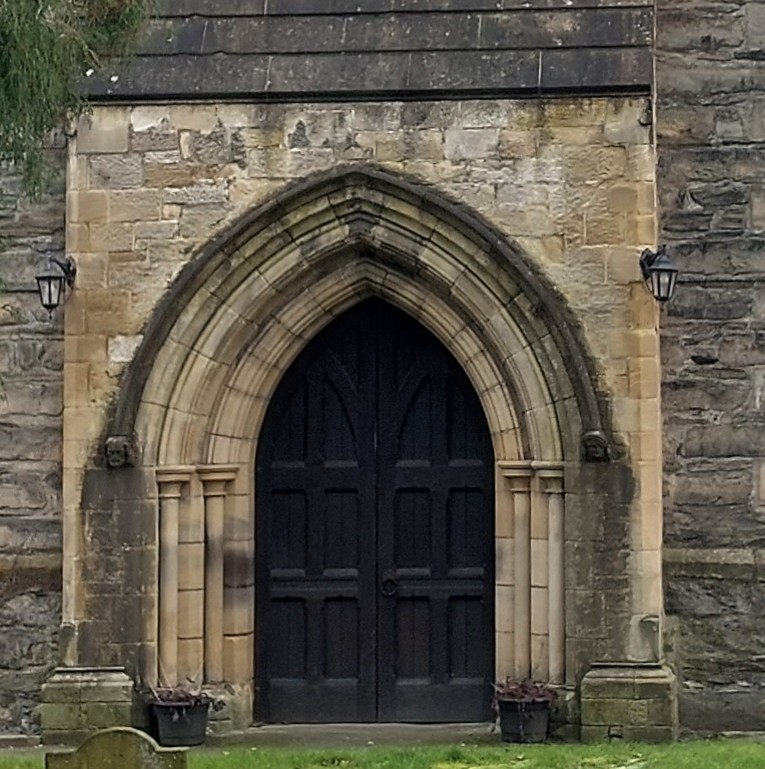 6. The face can be found at the side of the entrance to St. Collen’s Church