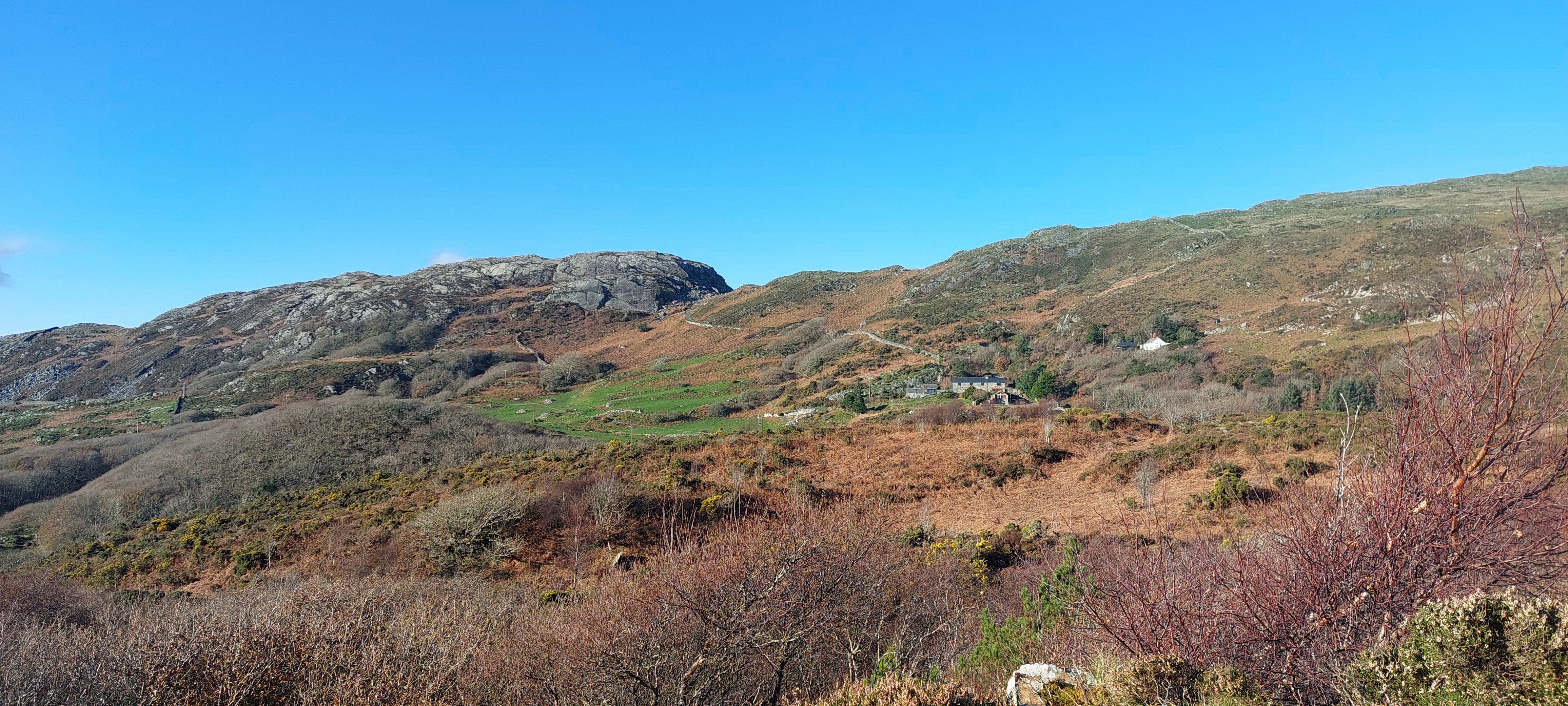 After a short but steep drive along a narrow road out of Barmouth or Y Bermo, we parked in the small roadside free car park. The walk starts at a gap in the wall a few yards from the bottom end of the parking area. We passed through a gate that my assistant opened for me and closed behind me. He has his uses. Admittedly, they are few but sometimes essential. Gate operation is a skill that I have yet to master. But, as they say,’Why have a dog and bark yourself?’