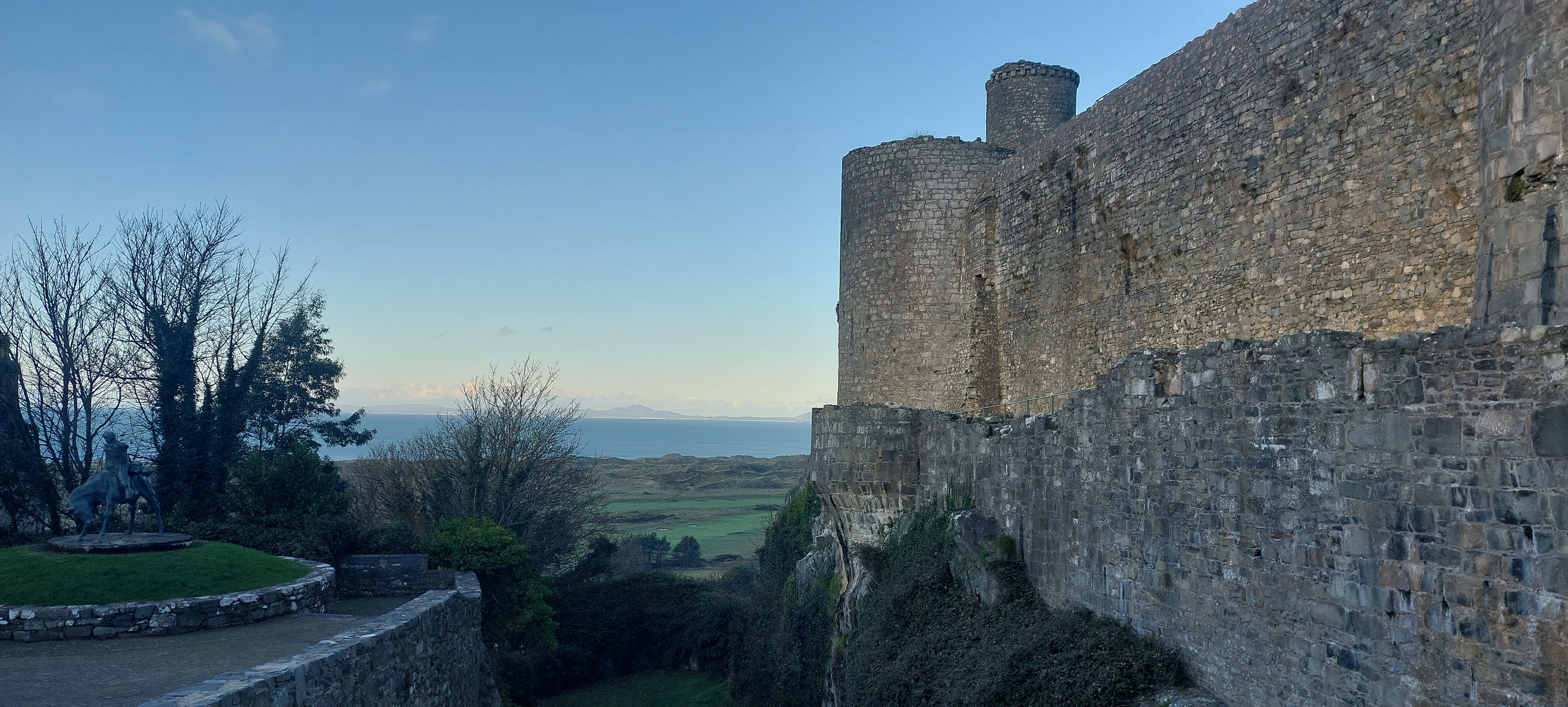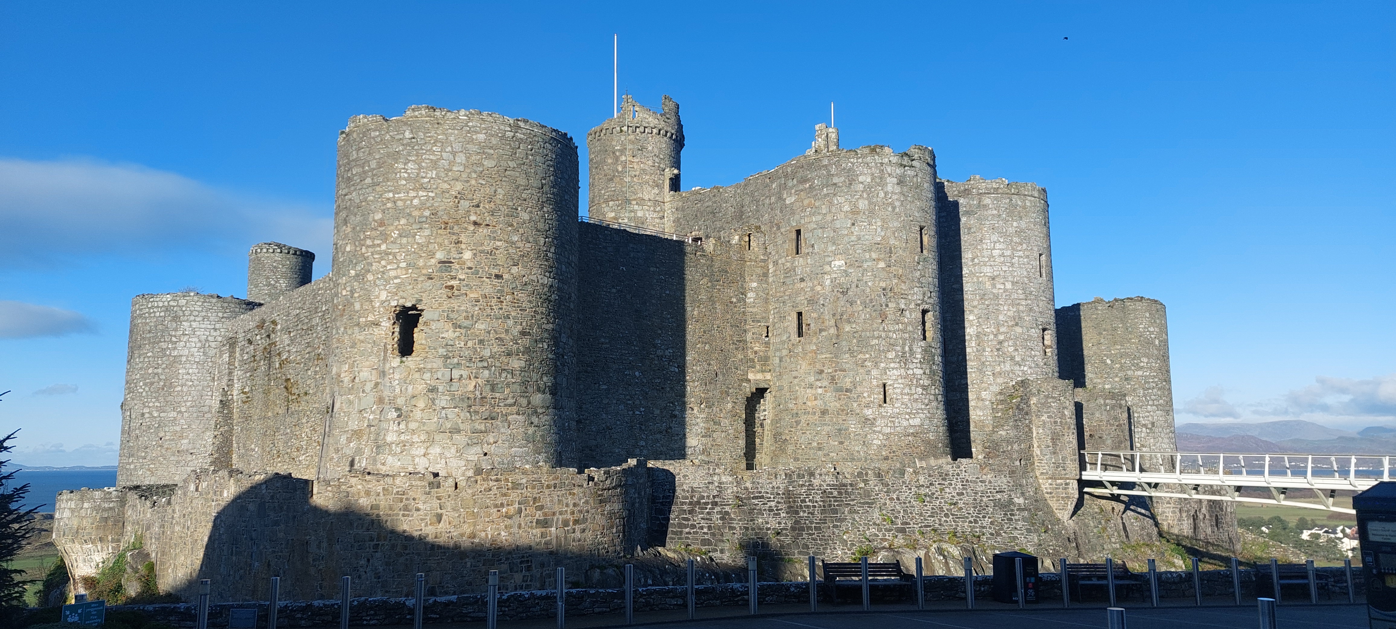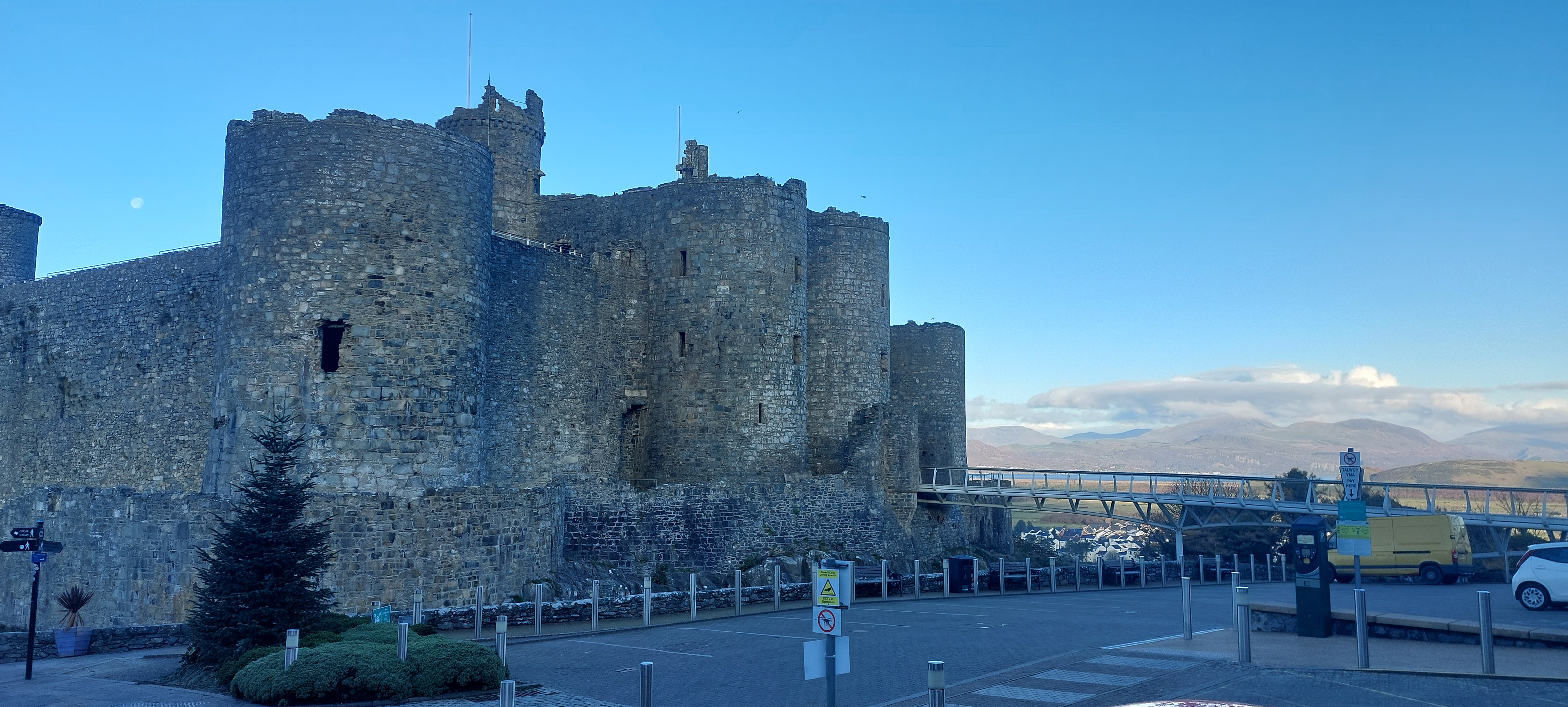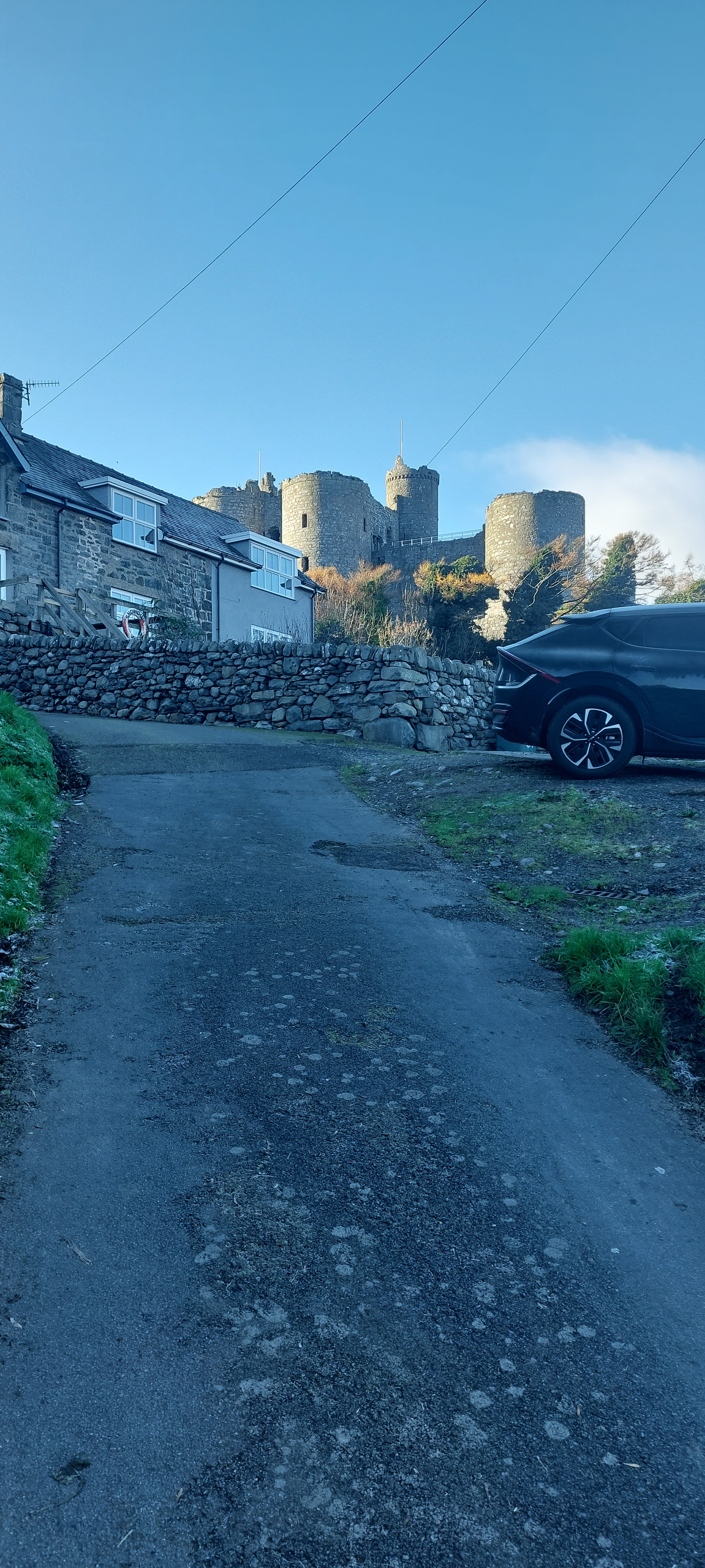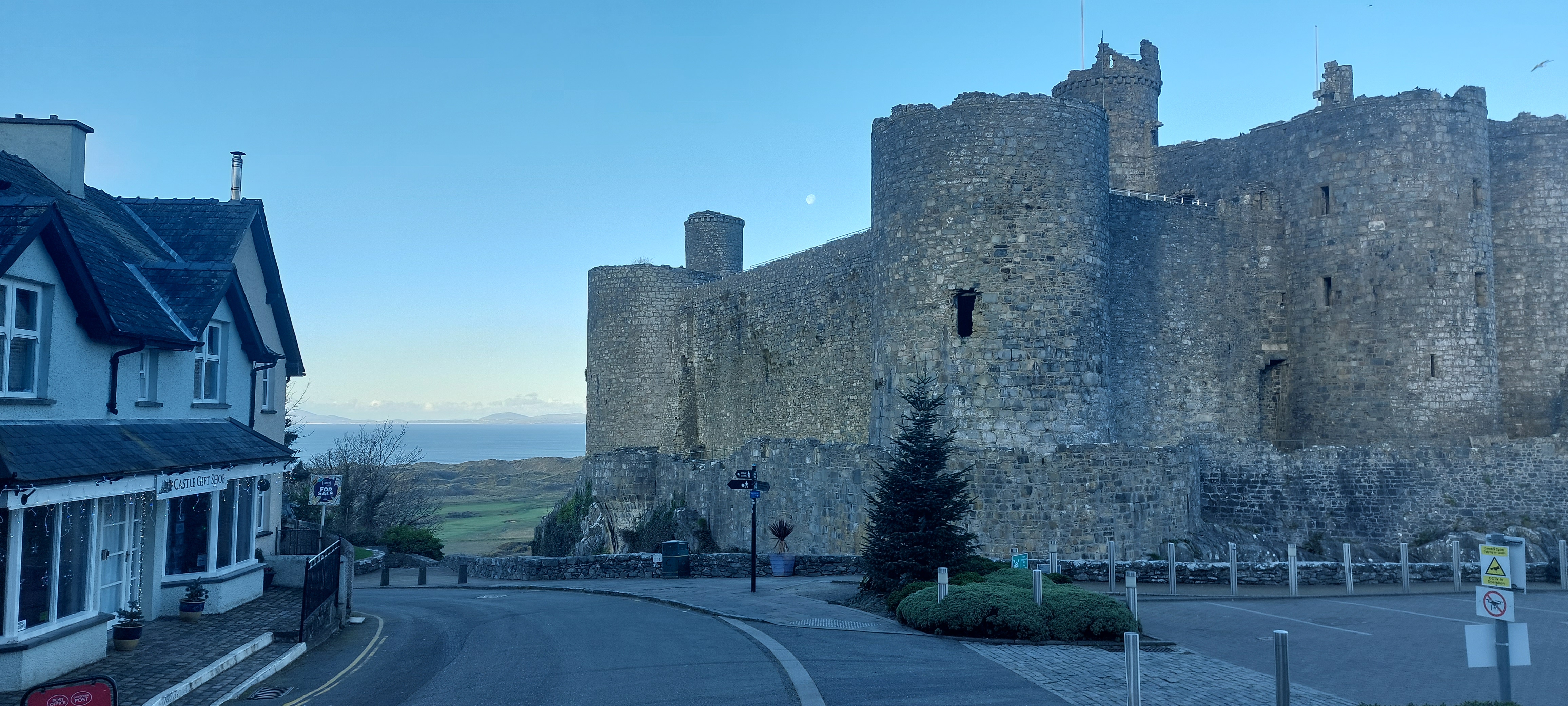 Hello again, people and pooches. Joe the Cocker here, reporting about our recent and chilly visit to Harlech Castle. It was literally a freezing morning that my human decided to drag me out of the comfort of my bed. This was not a hike but rather a short bimble around Harlech and an al fresco breakfast for the big feller. It was late November, and the temperature hadn’t risen much from the -3C overnight.