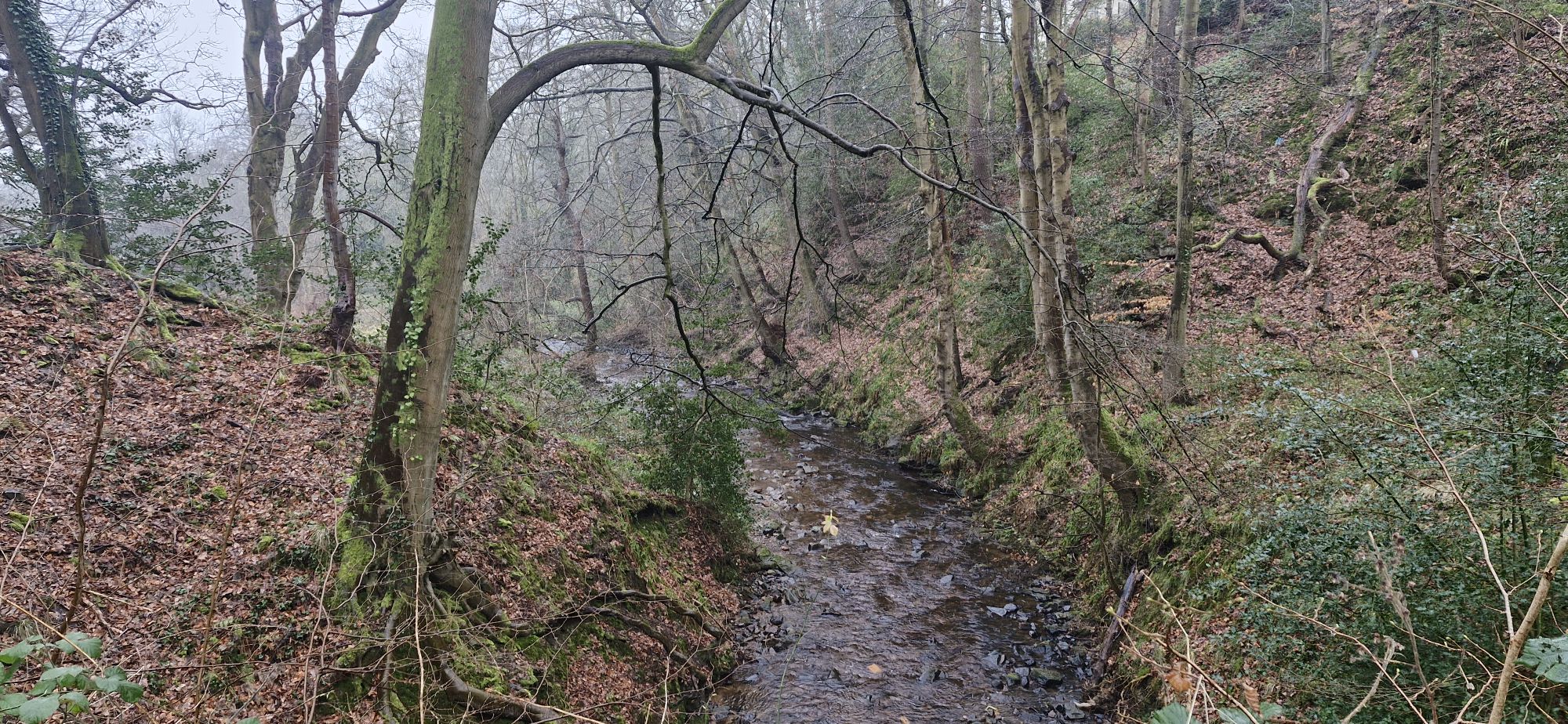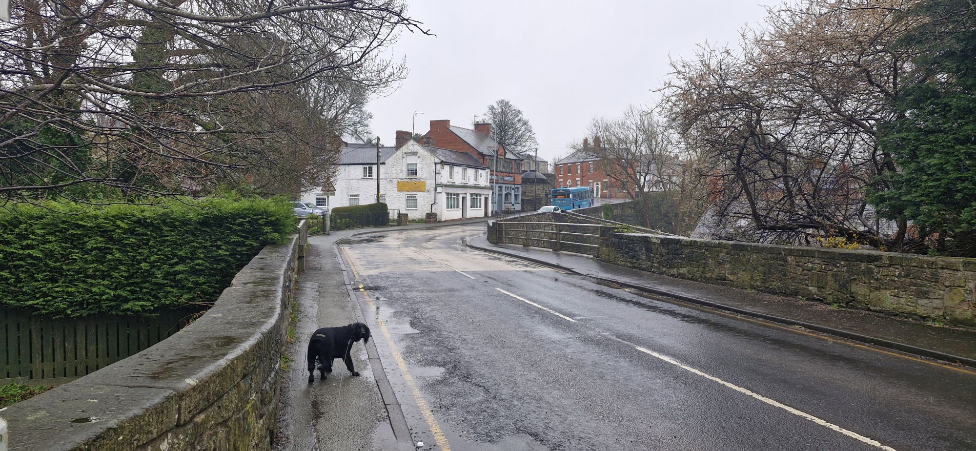The river flows from here through the village of Ruabon. In the warmer months, when the river isn’t in spate, my human lets me run and splash around in the river. I wasn’t allowed on this day. He is such a killjoy!