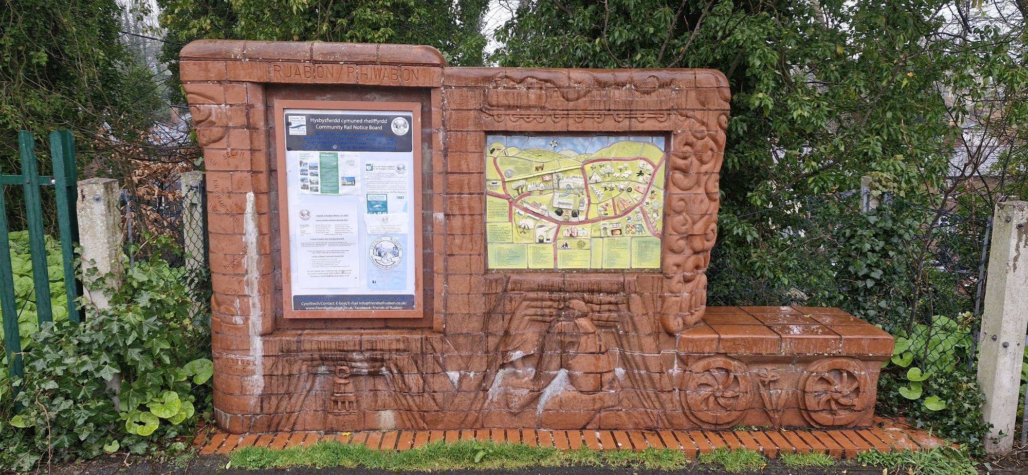 We passed the Friends of Ruabon noticeboard as we turned left down Station Road. The display contains a map of the village, which highlights some of the places of interest locally.