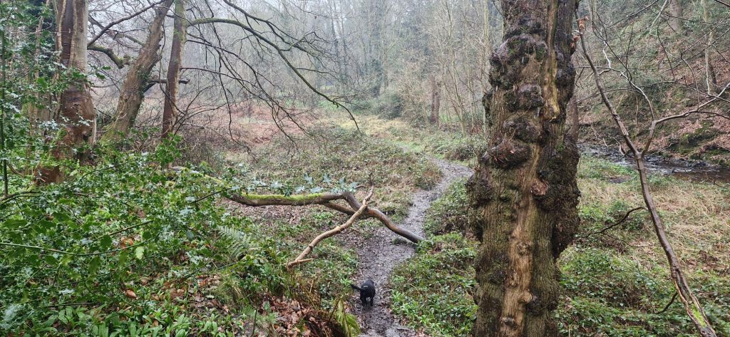 It was time for me to run off-lead for a while. There are some steep and camouflaged drops within Gardden Woods, or Rocky Woods, as they are known locally. The name comes from the three old quarries in the area. We walk here regularly, so my human trusts me to not fall down a steep slope. I don’t have as much faith in him, however!