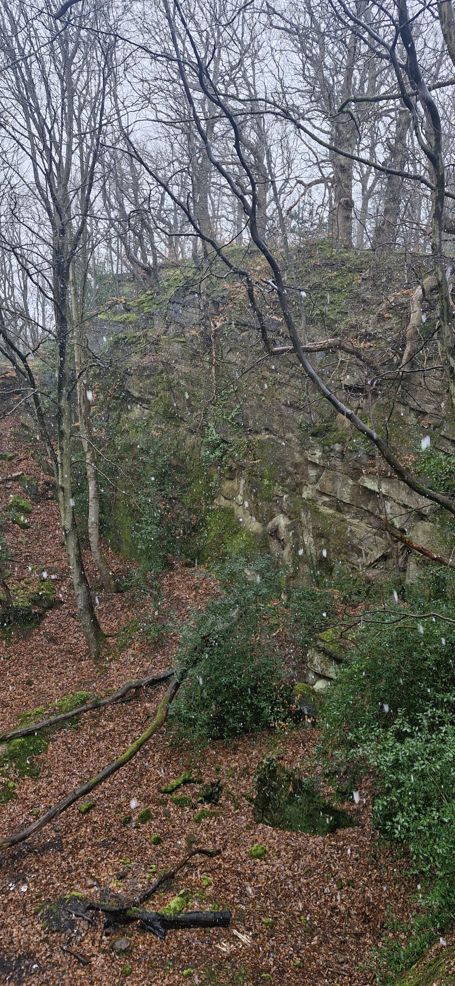 We found more evidence of the stone quarrying in the area as the snow continued. It wasn’t forecast to stick, so we plodded on.