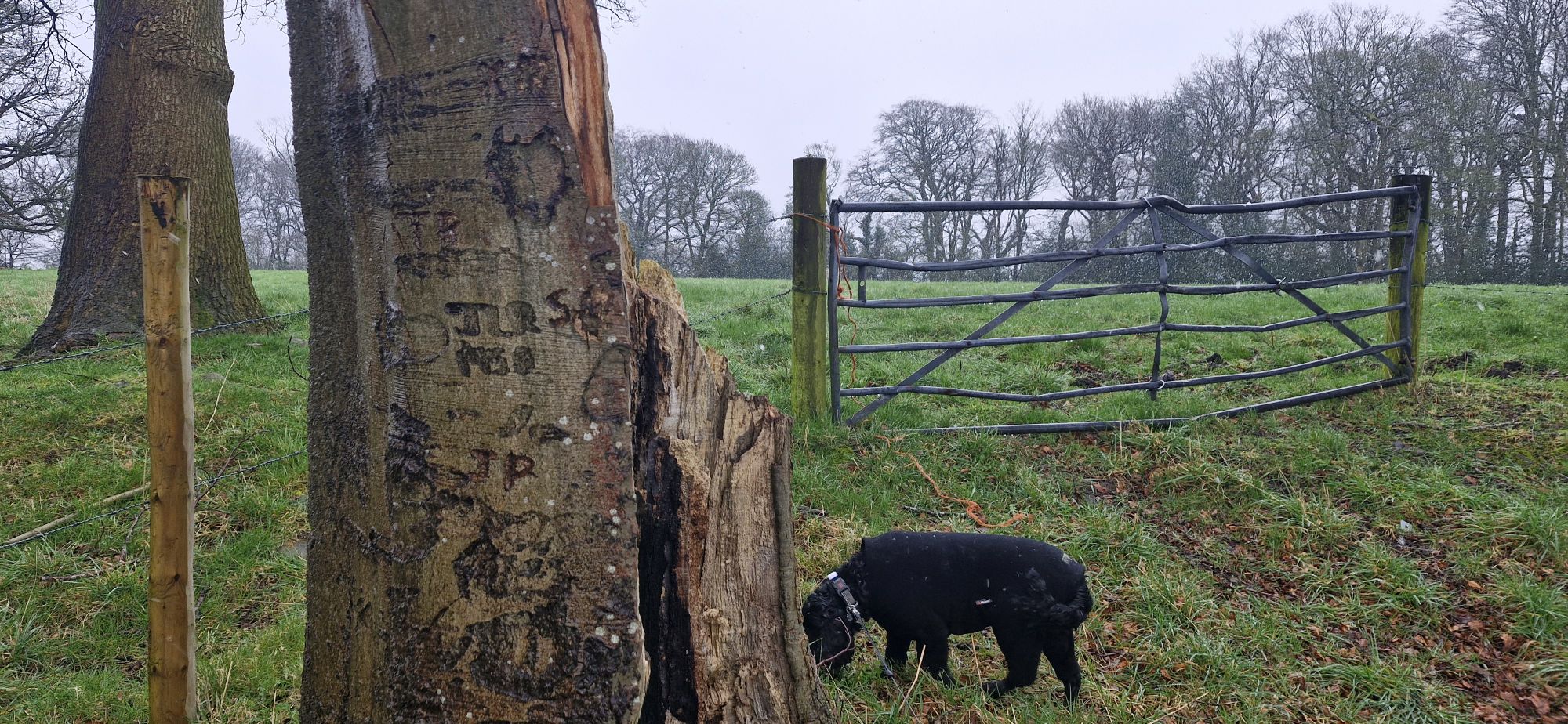 I was preoccupied with having a good mooch around while my human was trying to decipher the ‘ancient’ carvings on the tree trunk. He misses out on so much by not sniffing in the undergrowth.