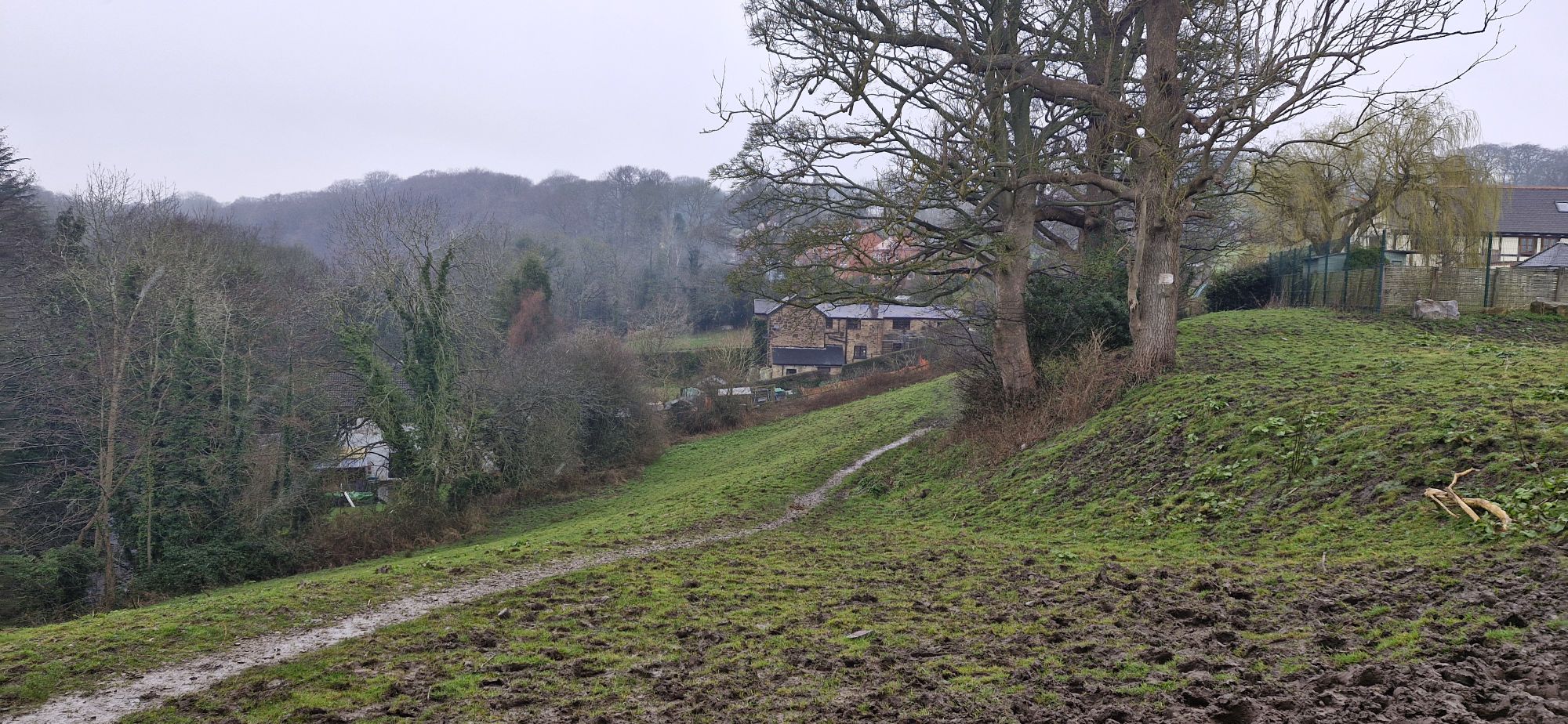 We followed the path up a slight incline, passing a house on the left and onto the football pitch.