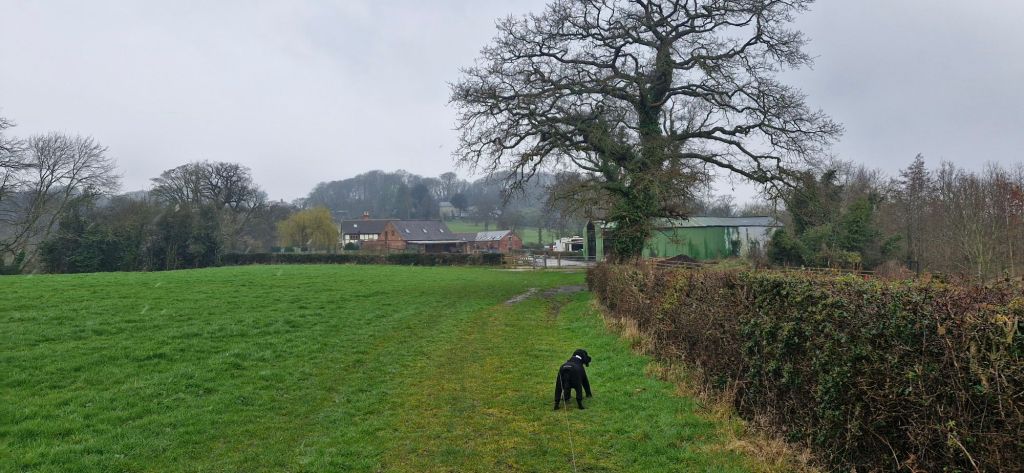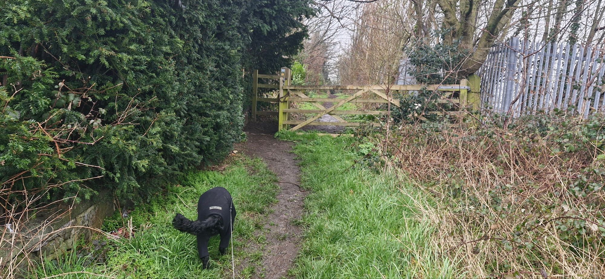 On reaching a metal kissing gate, we turned left along the side of the graveyard on a well trodden path. The walk was starting to get muddy at this point. My human threatened me with a hosing down when we returned home. I didn’t mind. Mud and puddles. Yay!!!